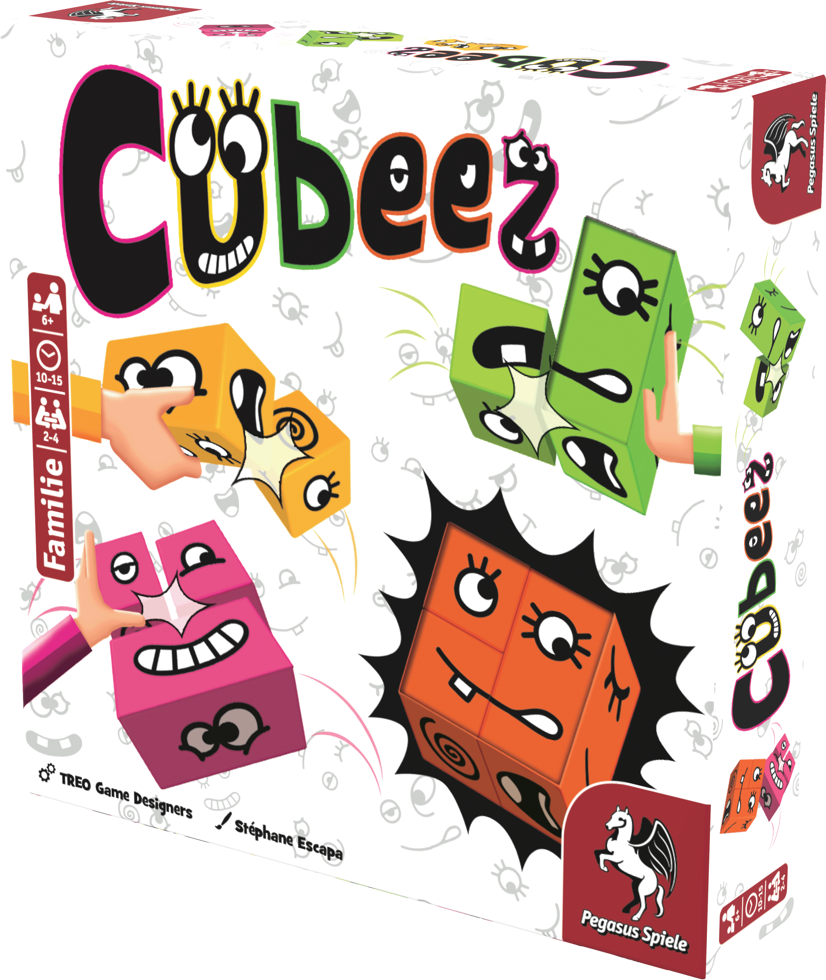 Ein Auge hier, ein Lächeln dort. Aber lugt da aus dem Mund ein Zahn raus und schaut das Auge nach links oder rechts? In Cubeez müssen die Spielenden genau hinschauen und das aktuell ausliegende Gesicht dann möglichst schnell mit ihren eigenen Cubeez-Würfeln nachbauen. Wer das zuerst schafft, erhält die Karte und es geht sofort mit dem nächsten Gesicht weiter.