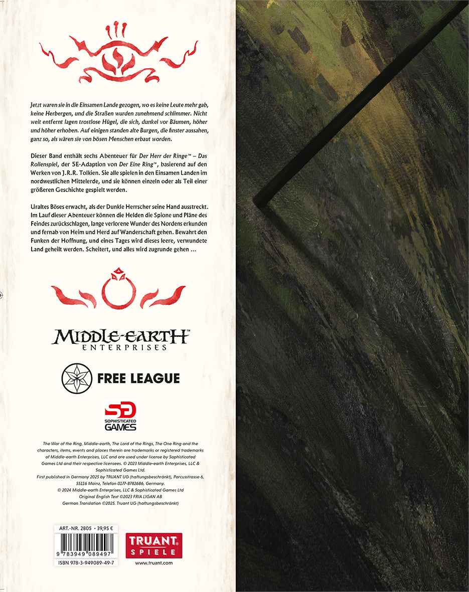 Dieser Band enthält sechs Abenteuer für DER HERR DER RINGE– Das Rollenspiel, der 5E-Adaption von Der Eine Ring™, basierend auf den Werken von J.R.R. Tolkien. Sie alle spielen in den Einsamen Landen im nordwestlichen Mittelerde, und sie können einzeln oder als Teil einer größeren Geschichte gespielt werden.