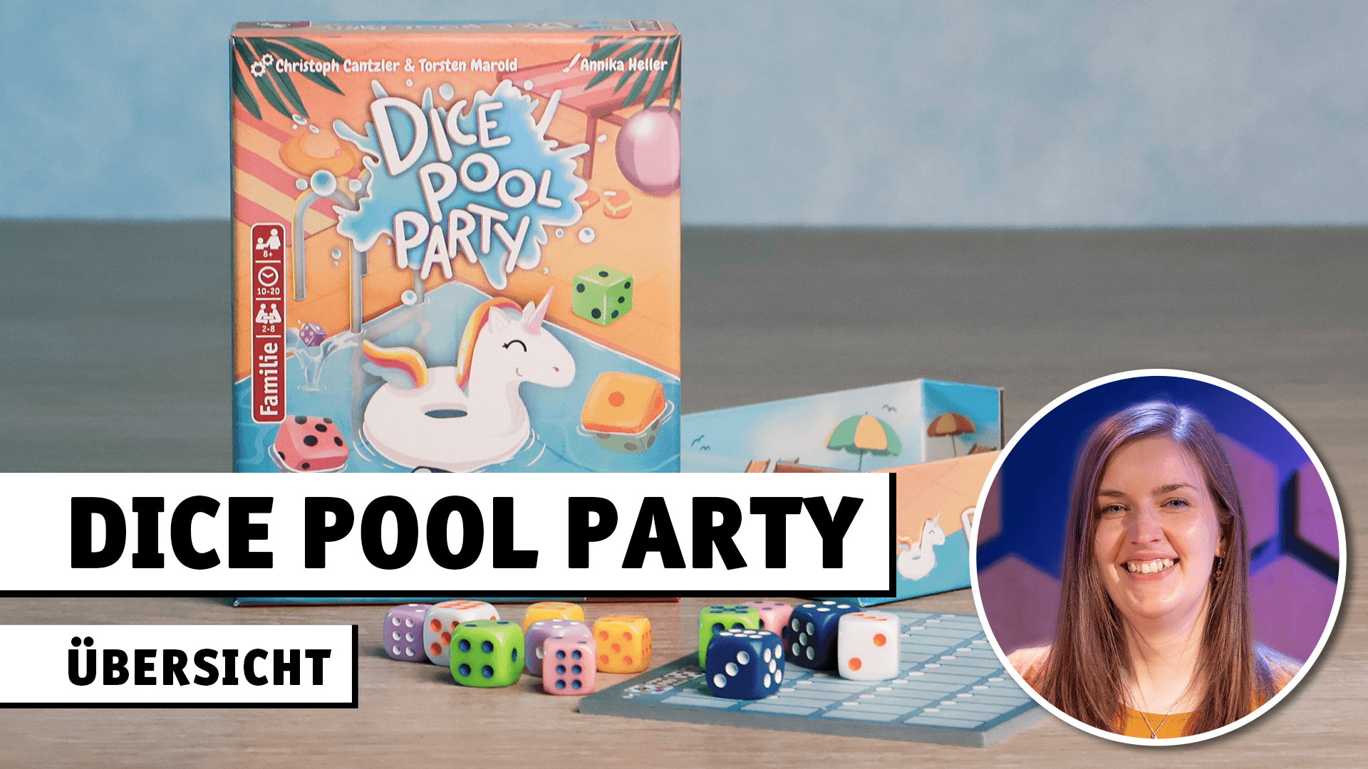 Die Dice Pool Party startet in 3 … 2 … 1 … Splash! Die Spielenden schütteln den Pool und müssen dann genau hinschauen und sich merken, was die Würfel zeigen. Aber Achtung: Dafür haben sie nur wenige Sekunden Zeit dafür! Dann wählen sie noch eine Kategorie, die ihnen viele Punkte bringt und ruckzuck können sie in einem Meer aus Punkten baden – doch Vorsicht: Jede*r kann jede Kategorie nur ein einziges Mal werten!