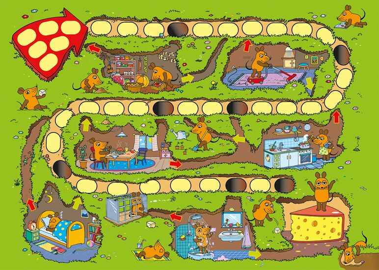 Alle Mäuse sind hinter dem leckeren Käse her und rennen, was die Beine hergeben. Aber der Weg ist gespickt mit Mauselöchern. Schwupps – schon rutscht die erste Maus hinein. Jetzt entscheidet der Würfel, ob sie einen Umweg macht oder eine Abkürzung findet. Kurz vorm Ziel wird es noch einmal spannend! Denn wer jetzt in die Mausefalle gerät, wird so schnell nicht an den Käse kommen. Wer als Erster in den Käse schlüpft, hat das Spiel gewonnen.
