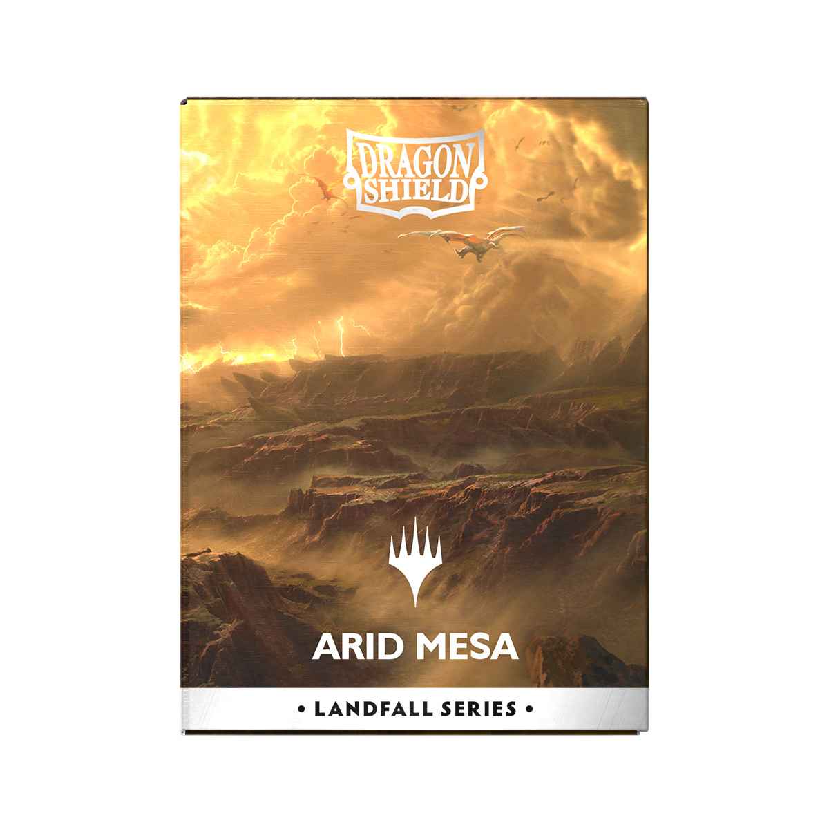 The fetch lands are among the most iconic Magic: The Gathering™ cards ever made. Now, as part of the Landfall Series, you can get the jaw-dropping showcase version of Arid Mesa – with dragons! – as Dragon Shield Matte Dual Art Sleeves.