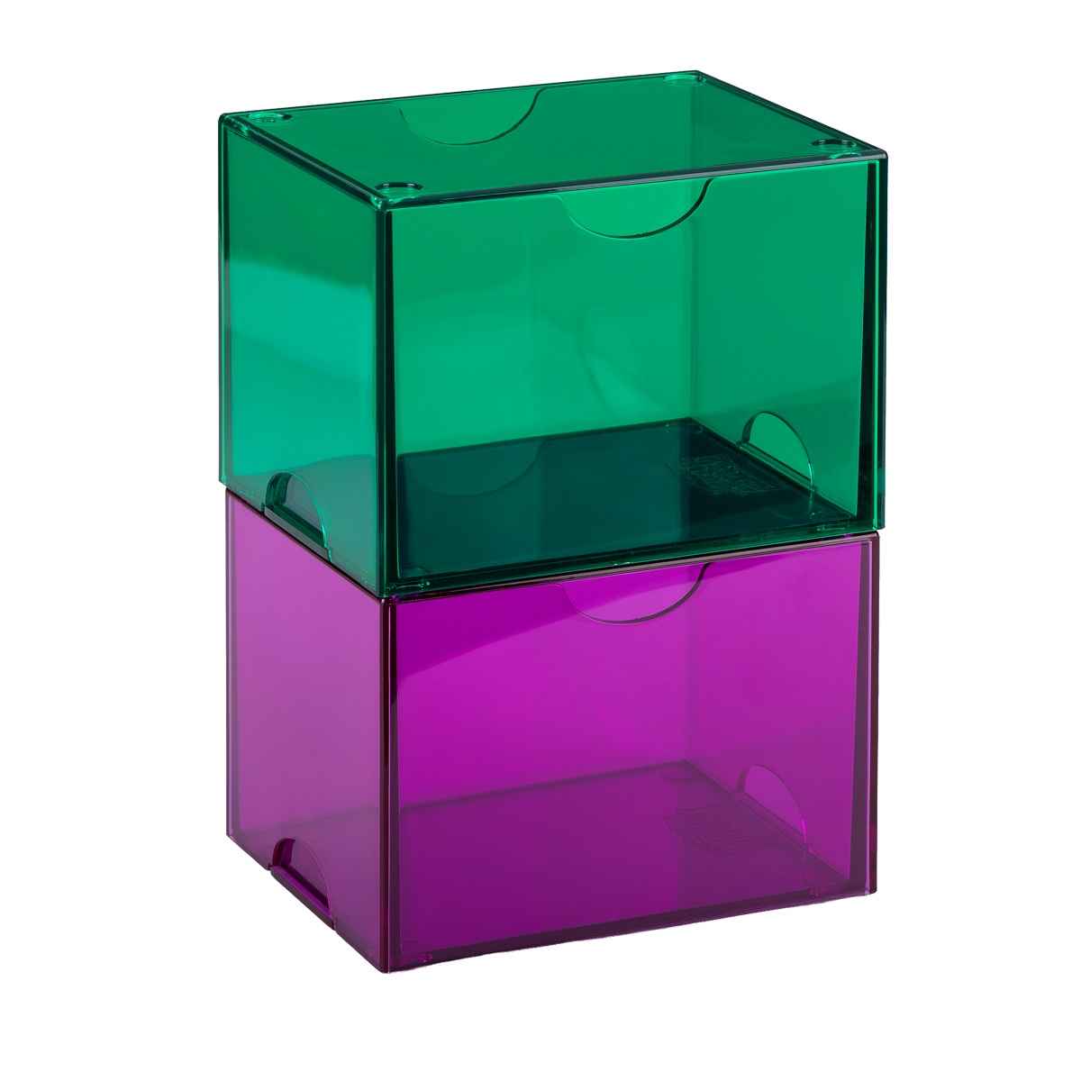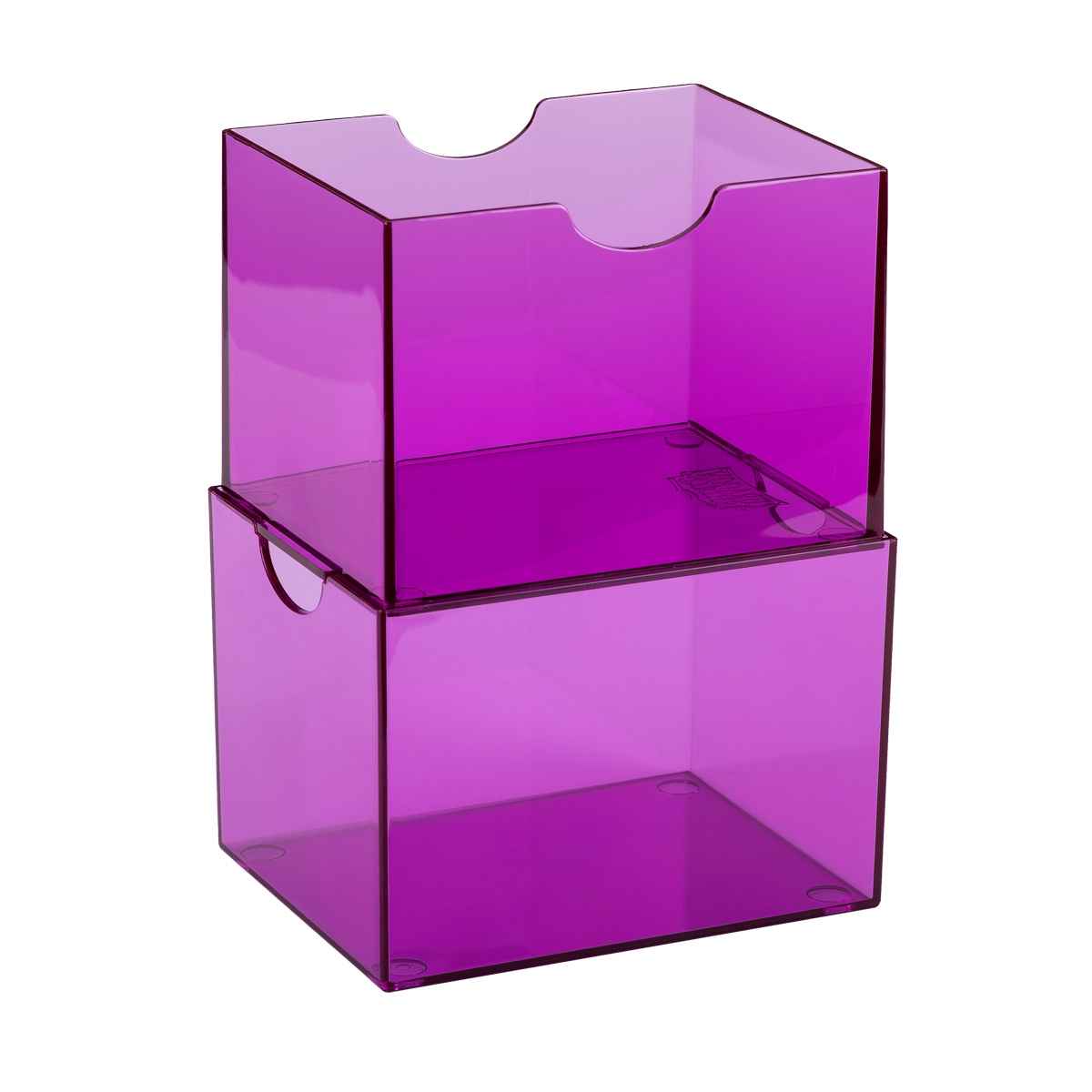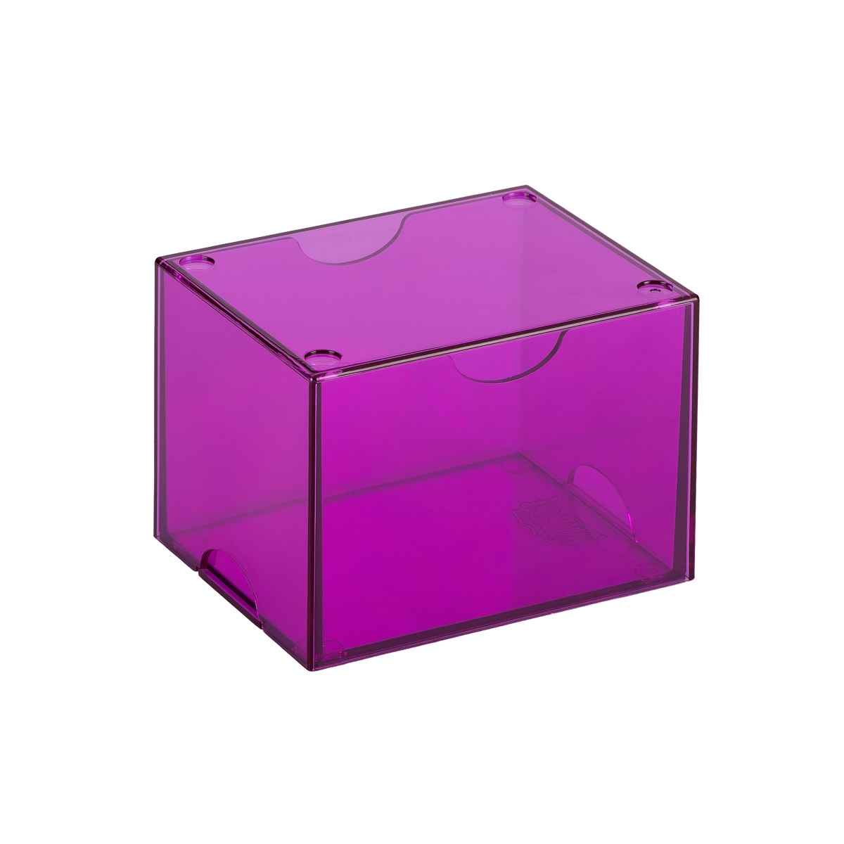 The box is Clear Purple acrylic and measures 83,5 x 106 x 75,5 mm.