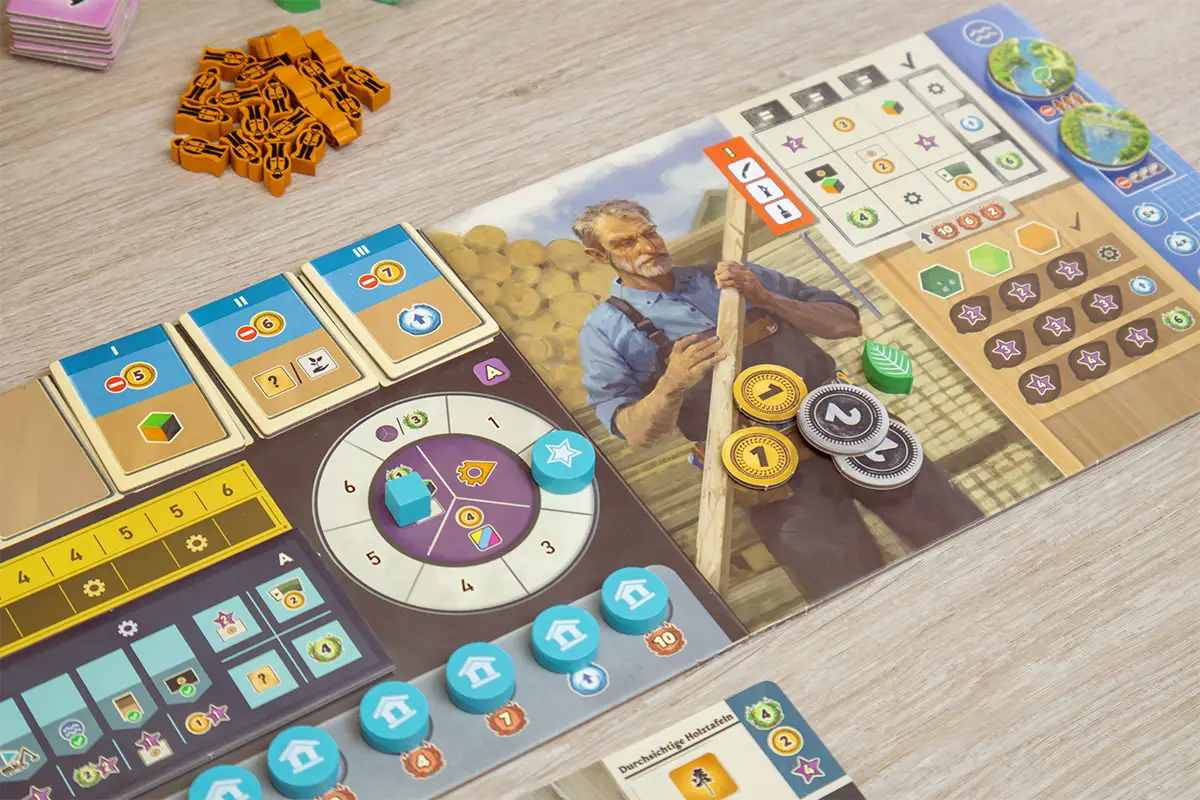 | Inhalt: | 1 Spielplan, 4 Charakterpläne, 44 Auftragskarten, 49 Zielkarten, 15 Zufallskarten, 299 Plättchen, 170 Holzteile, 1 Baumhöhlenplan, 1 Försterplan, 21 Försterkarten, 1 Anleitung |