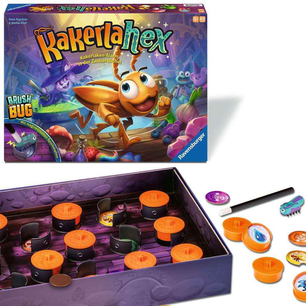 Eines Nachts im Zauberwald, die Hexen brauen ihre Tränke. Aber was war das? Plötzlich wuselt eine Kakerlake zwischen den Zauberkesseln herum! Fällt sie in einen Trank, ist dieser verdorben. Schwingt den Zauberstab und findet die richtigen magischen Zutaten! Gewonnen hat, wer die meisten Punkte für erfolgreich gebraute Tränke sammeln konnte.