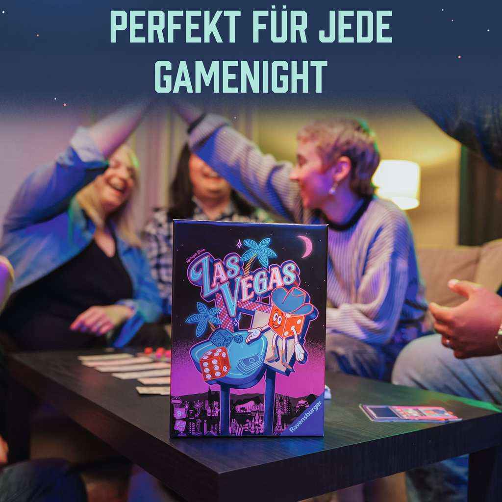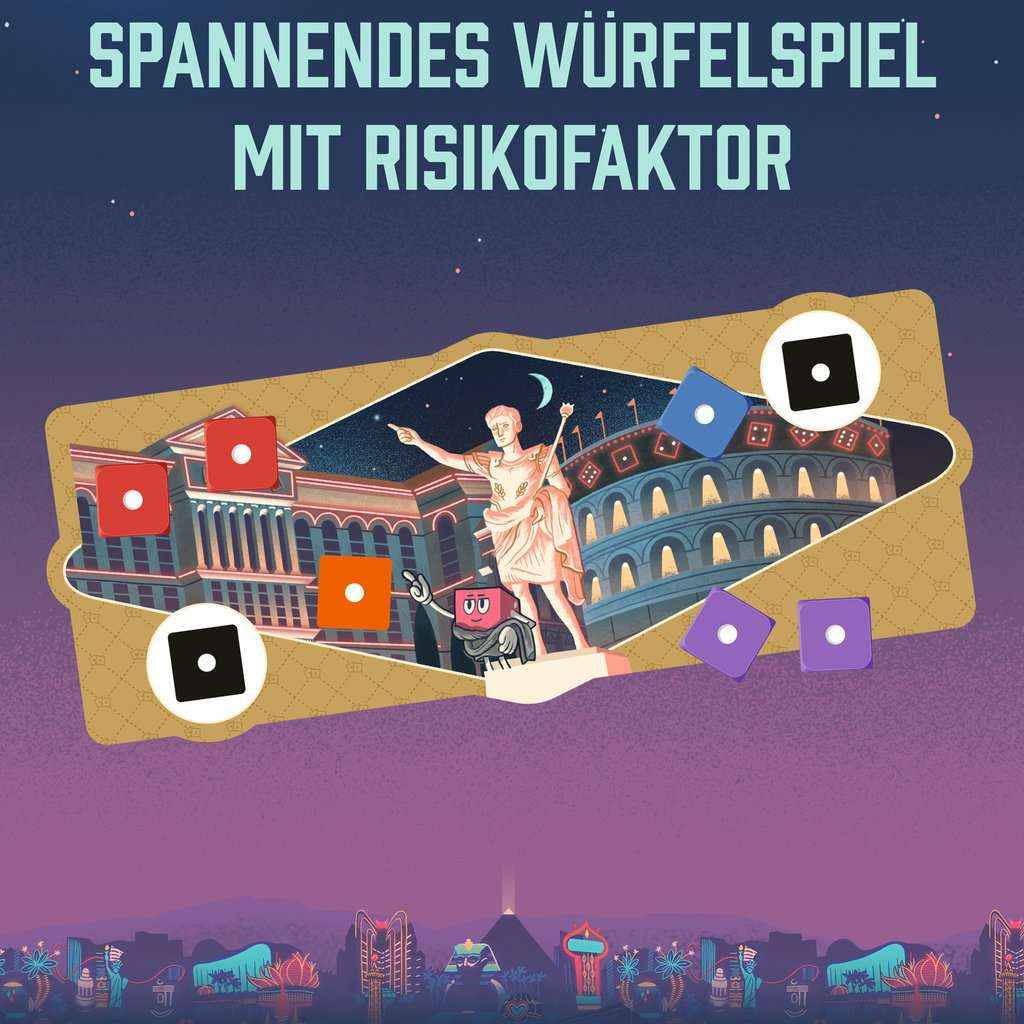 Die 2 - 6 Spieler versuchen ihr Würfelglück in der bunten Glitzerwelt von Las Vegas. Sie besuchen verschiedene Casinos und müssen versuchen, dort möglichst viele Dollars zu scheffeln. Allerdings kommen sich die Glücksritter dabei immer wieder ins Gehege und machen sich gegenseitig die Kohle streitig. So entstehen viele interaktive Situationen, die immer wieder gerne zu Schadenfreude und Unterhaltung sorgen, gerade auch angesichts manchen nicht so geplanten Würfelwurfs.