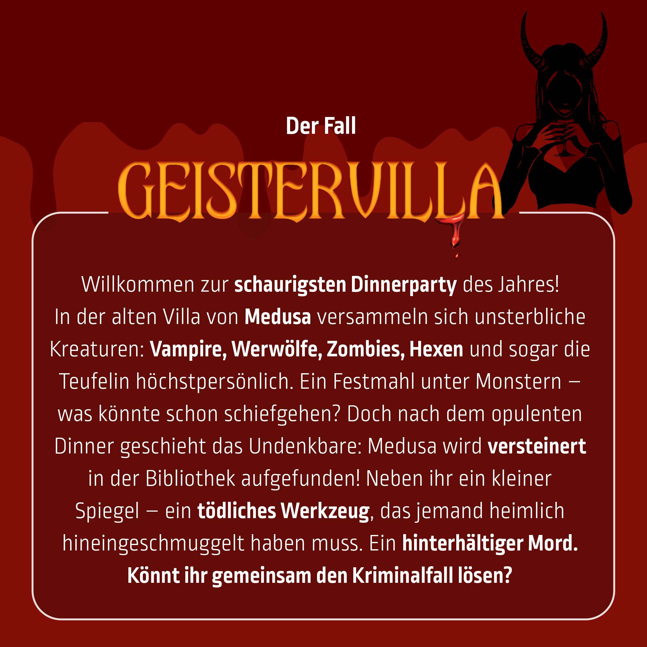 Willkommen zur schaurigsten Dinner-Party des Jahres! In der alten Villa von Medusa versammeln sich unsterbliche Kreaturen: Vampire, Werwölfe, Zombies, Hexen und sogar die Teufelin höchstpersönlich.