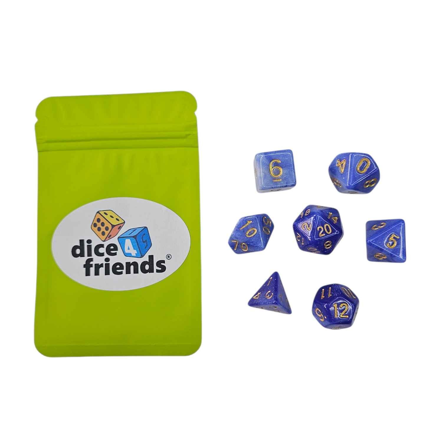 7-teiliges polyedrisches RPG-Würfelset bestehend aus den spieltypischen und relevanten RPG-Würfeln: D4, D6, D8, D10 (0-9), D10 (00-90), D12 und D20.