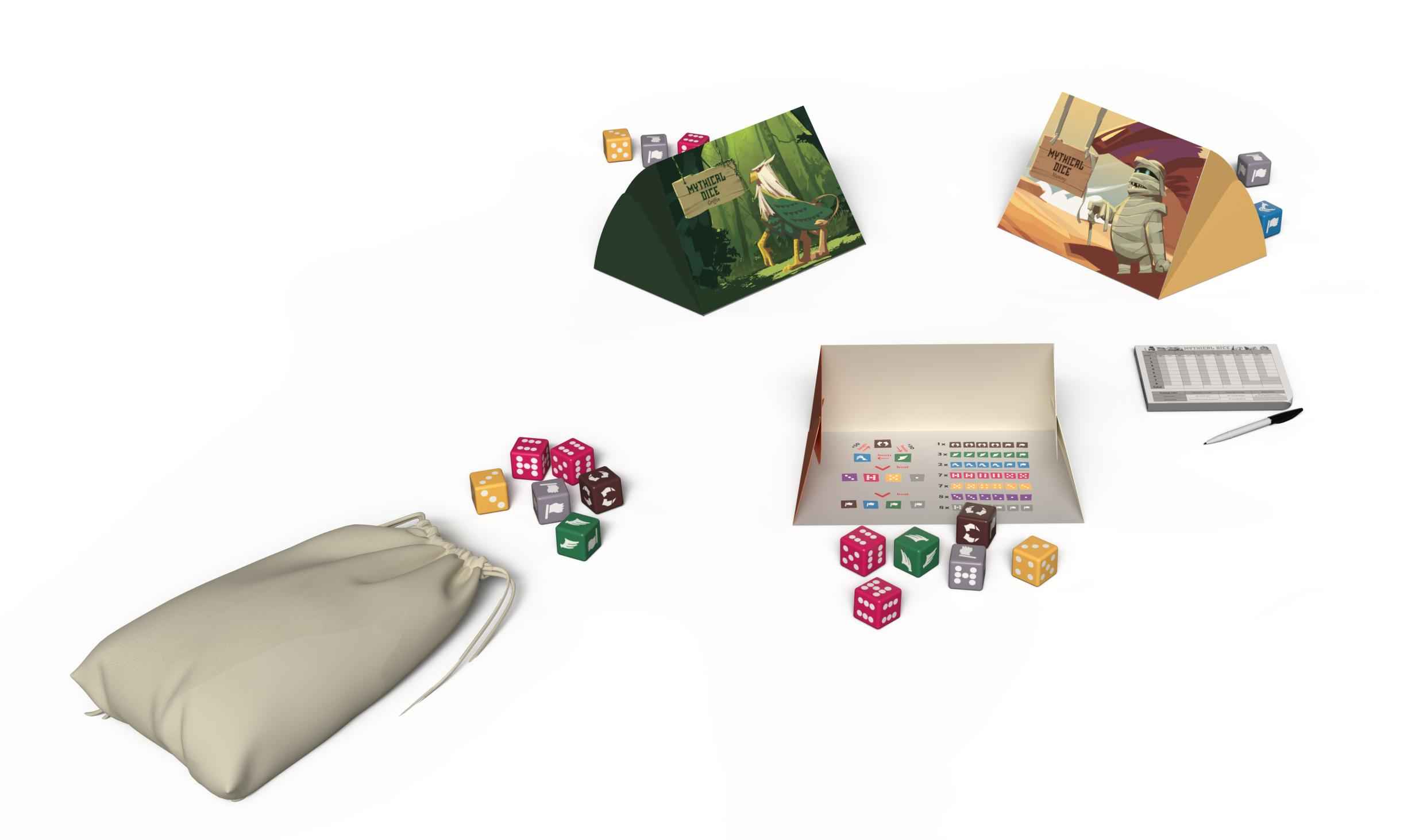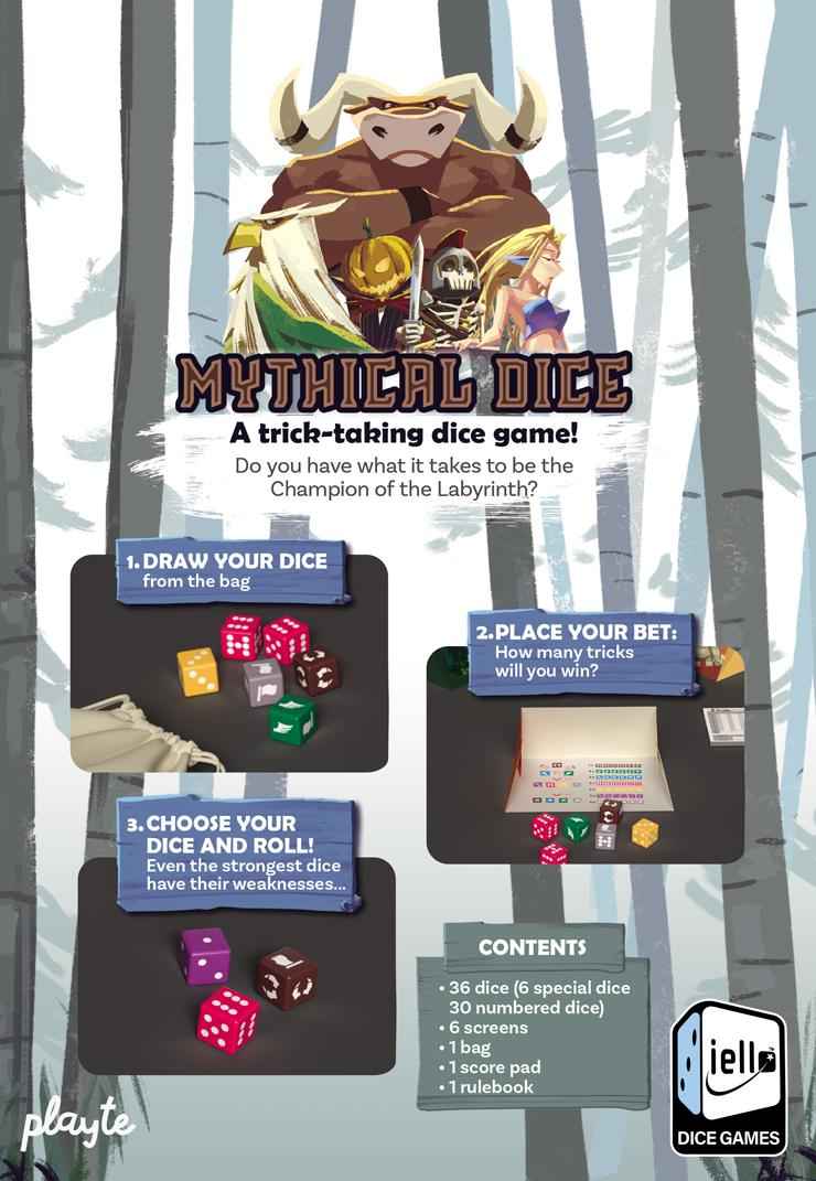 Mythical Dice is a trick-taking game played with dice. Guess how many tricks you will take (or not) at the start of each round. Guess right, and you will become the champion of the labyrinth! Each round, you’ll play with an extra die to score more points or risk losing everything.Be careful, your dice may be captured or even worth zero! It’s up to you to come up with the best strategy based on your roll statistics! Because in the end, in Mythical Dice, it’s the values that count (and the fun around the table when your precious Minotaur finally falls on its zero face, causing you to lose your precious bet!