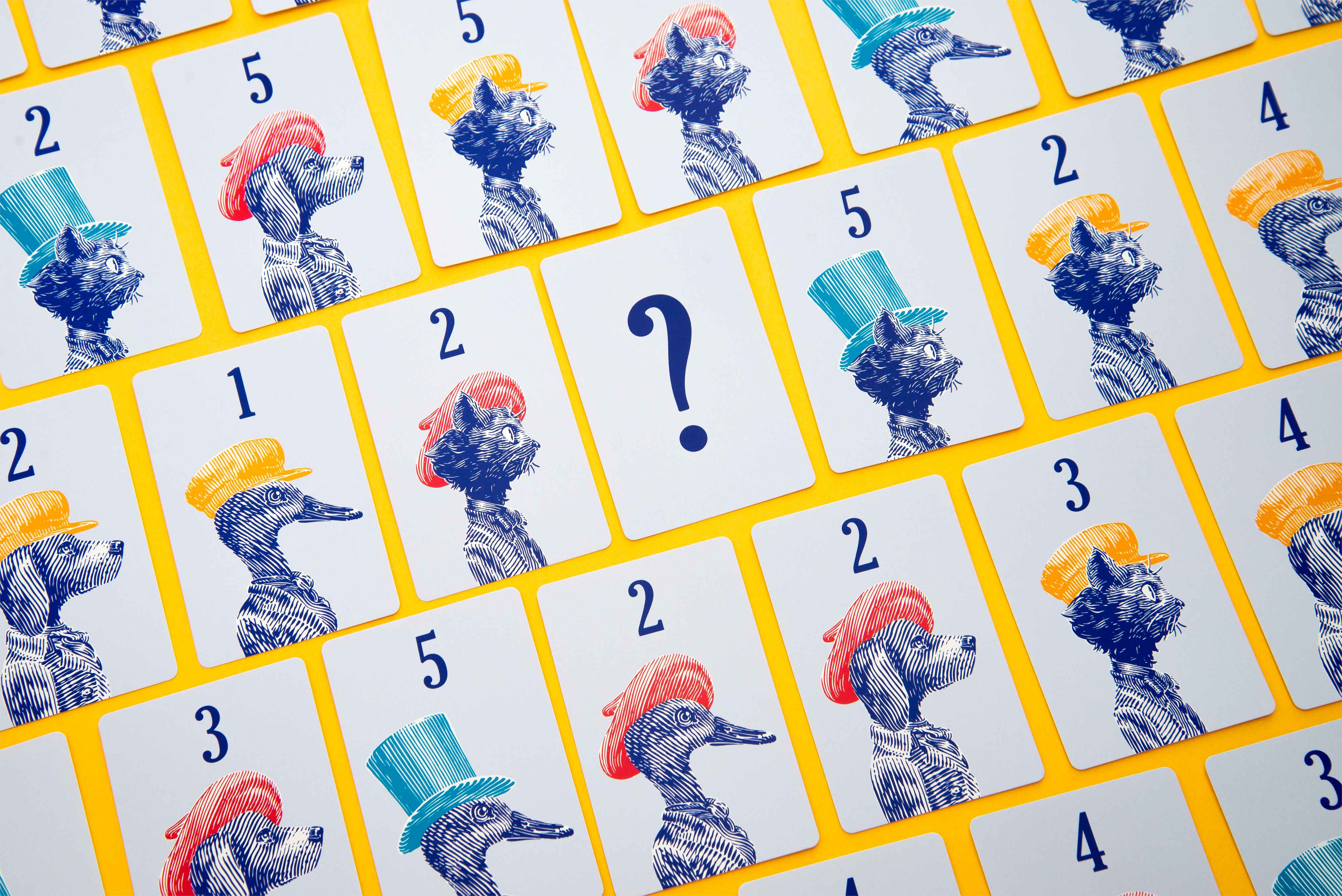 with combinations of three animals, three hats, and five