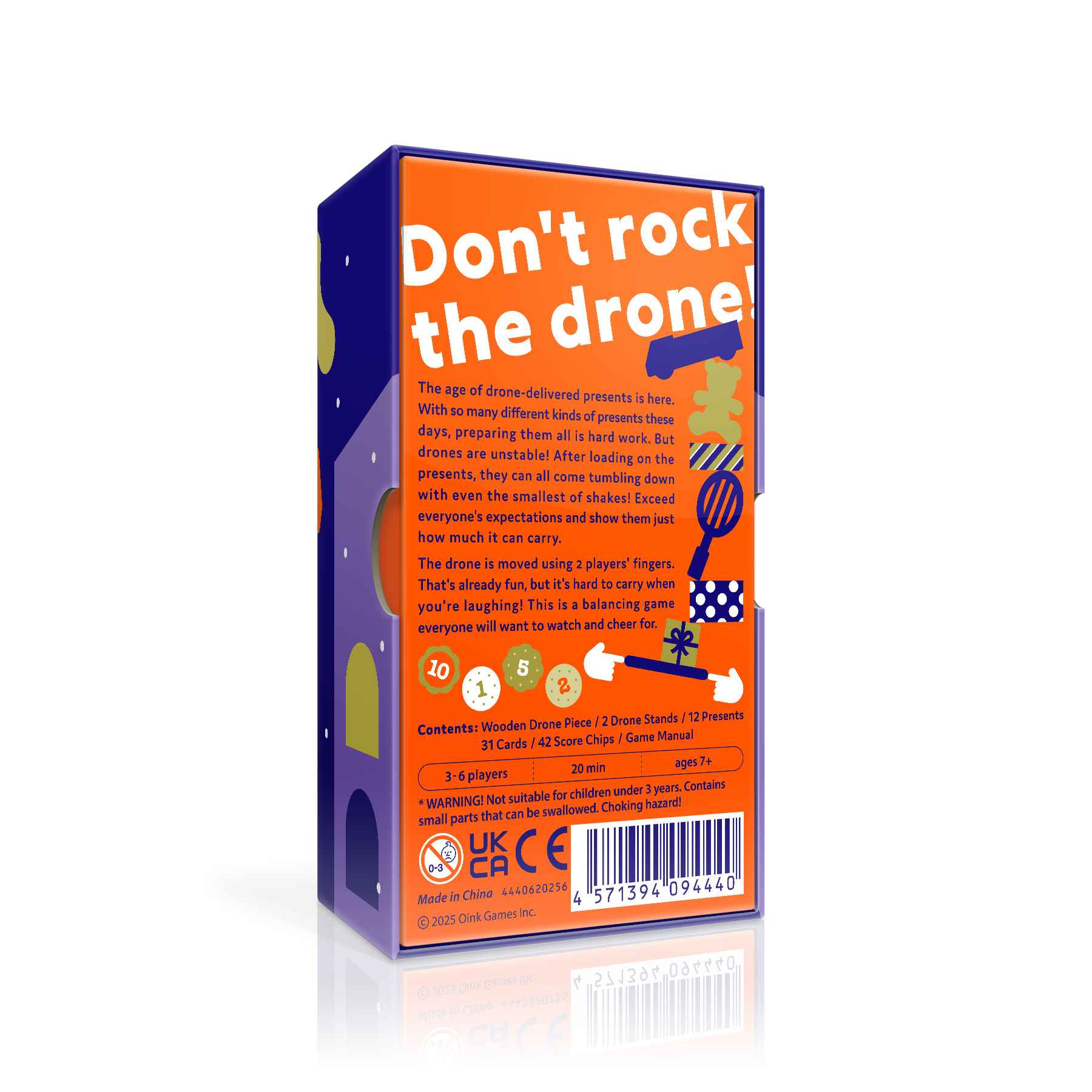 together to carry a drone stacked with presents. Each player