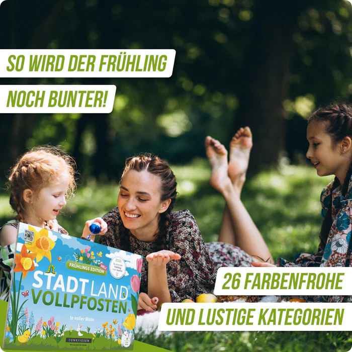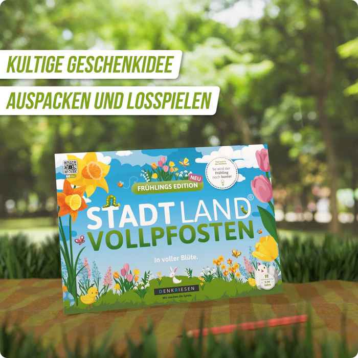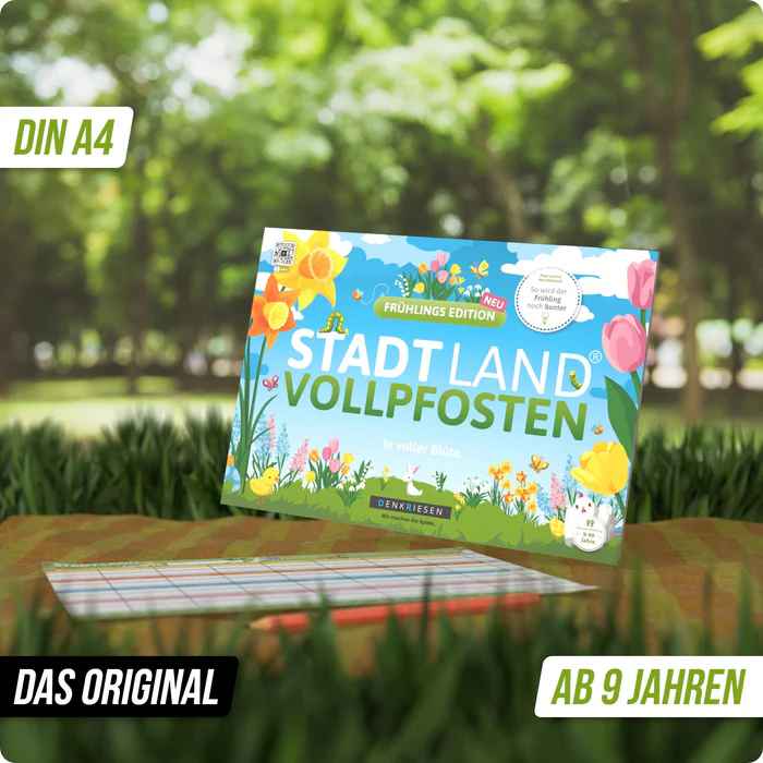 Die frühlingsfrische Edition des Kultspiels STADT LAND VOLLPFOSTEN rund ums Thema Frühling und Ostern. Dieser Spielblock mit 26 kreativen und lustigen Kategorien für die blumige Jahreszeit mit Familie und Freunden. Spaß garantiert!
