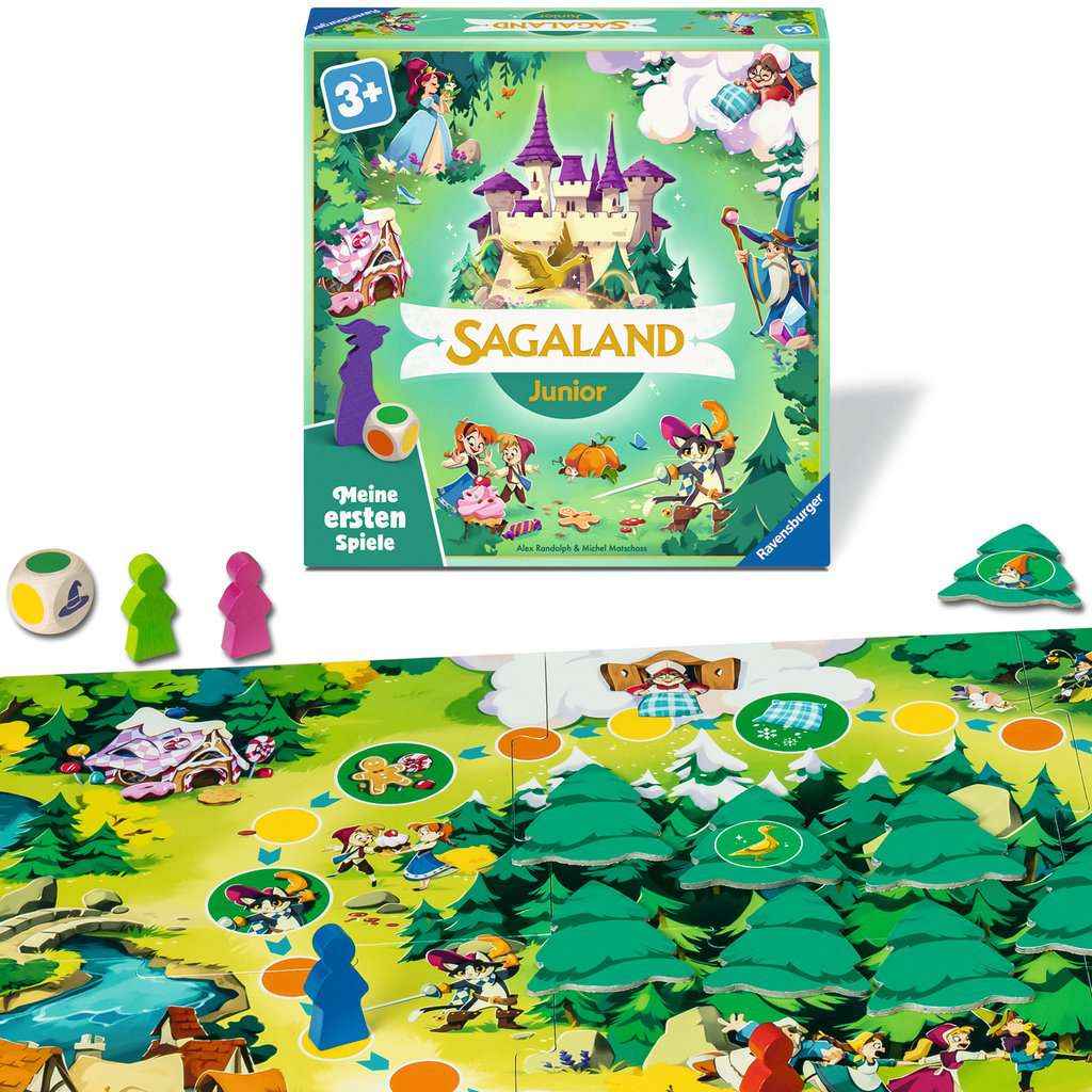 "Der magische Wald von Sagaland ruft! Auf einem Spielplan können sich die Mitspieler gemeinsam auf die Suche nach den märchenhaften Gegenständen des Königs machen. Alle gemeinsam oder jeder für sich: Sagaland bietet für alle das passende Abenteuer! Dieses Kinderspiel fördert erstes Regelverständnis, Konzentration und vor allem Merkfähigkeit. Das Königreich wartet auf mutige Gegner."