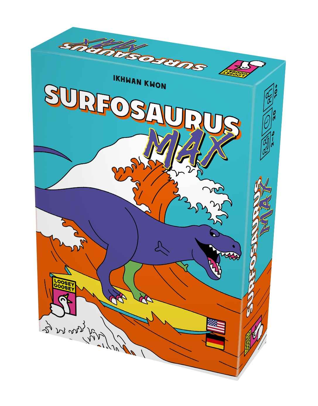 Kartenkombos – miteinander gegeneinander! Surfosaurus MAX spielt ihr mit Karten in sieben Farben, mit Werten von 01 bis 12. Ein hoher Kartenwert bedeutet wenige Punkte und andersherum. Wenn du am Zug bist, spielst du eine Karte aus und ziehst sofort nach. Wenn die richtige Anzahl Karten liegt, gewinnt die eine bestmögliche Karten-Kombo auf dem Tisch, die sich aus allen Karten aller Spieler bilden lässt. Falls auch du dieser Kombo eine Karte beisteuern konntest, bekommst du Punkte.