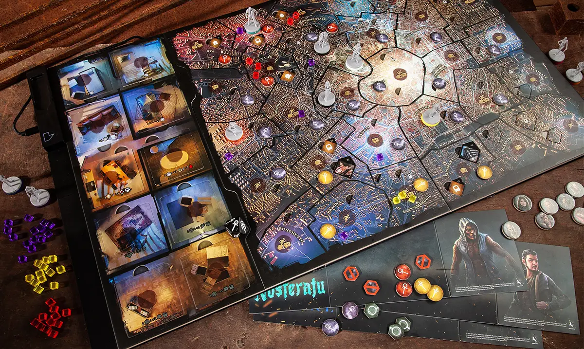 Durch die auf die verschiedenen Charaktere individuell zugeschnittenen Möglichkeiten, mit Situationen umzugehen, werden sowohl unmittelbare als auch dauerhafte Konsequenzen in Gang gesetzt, die jeden Spielverlauf einzigartig machen. Das Spiel bietet Rollenspielelemente, persönliche Ziele und verborgene Informationen und wird mit intelligenten Miniaturen und Würfeln sowie einem detaillierten Spielbrett geliefert.