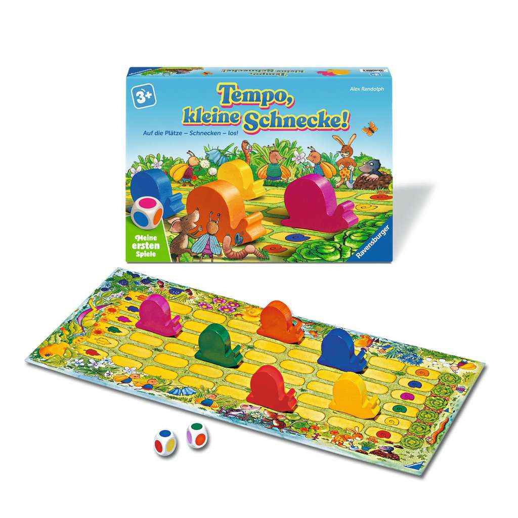 "Auf die Plätze – Schnecken – los! Wer hat beim Rennen zu den grünen Salatköpfen die Fühler vorn? Der Spieler, der an der Reihe ist, würfelt mit beiden Farbwürfeln und zieht die passenden Schnecken jeweils ein Feld vor. Jetzt die Würfel an den nächsten Spieler geben, und schon geht der Wettlauf weiter. Das Spiel ist zu Ende, wenn eine Schnecke bei den Salatköpfen ankommt. Diese Schnecke hat gewonnen und darf sich satt fressen. Der beliebte Klassiker mit 6 hochwertigen Holzschnecken!"