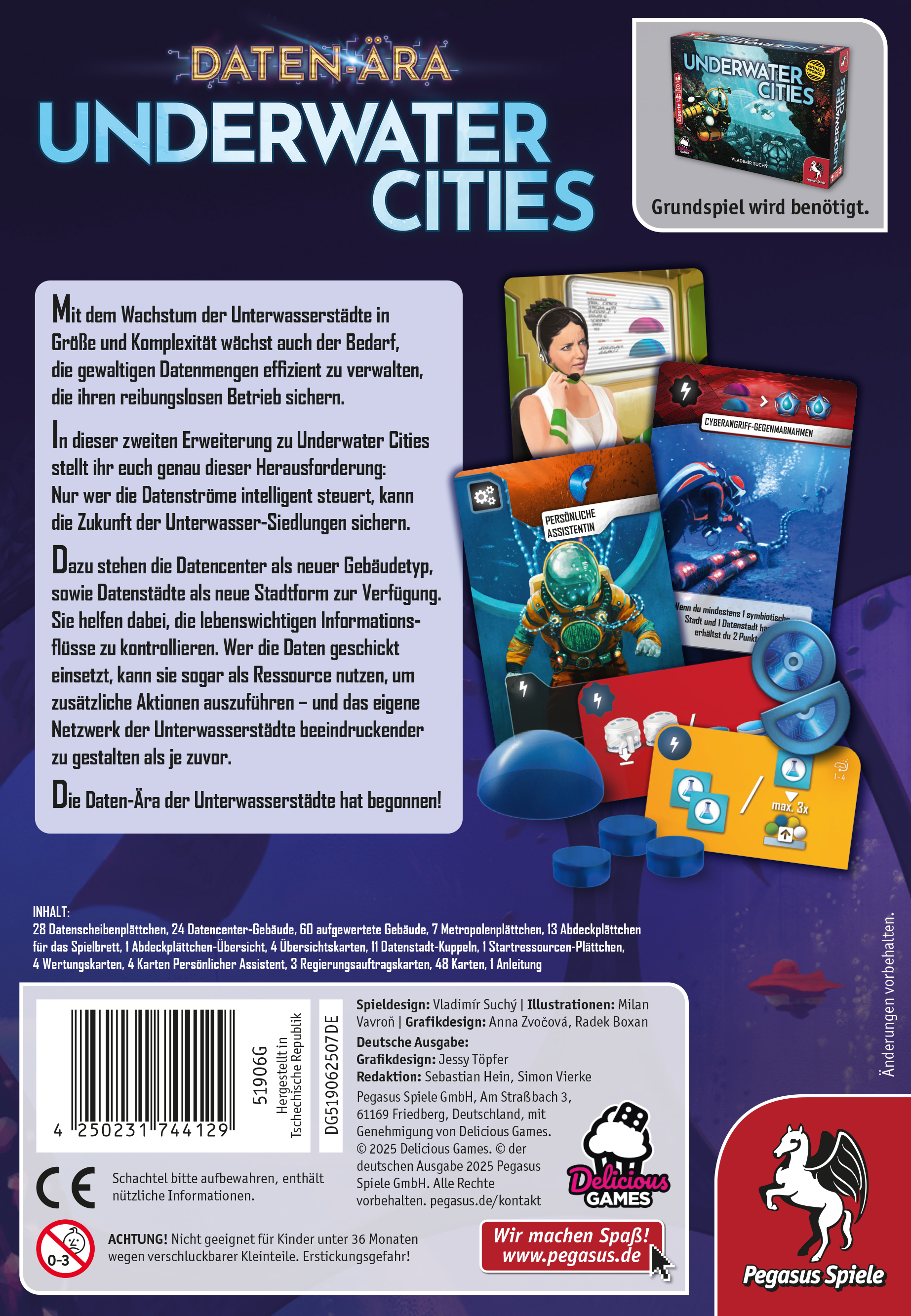 Underwater Cities: Daten-Ära ist die zweite Erweiterung für Underwater Cities. Underwater Cities: Daten-Ära kann auch mit der ersten Erweiterung Underwater Cities: Neue Entdeckungen kombiniert werden.