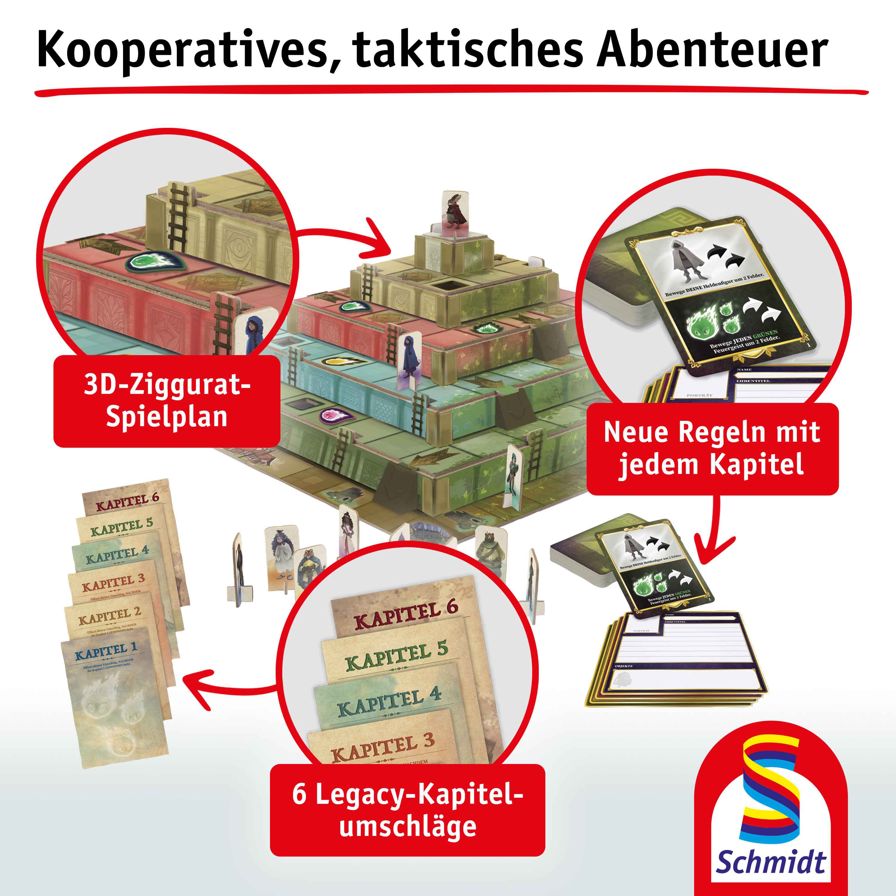 Die ZIGGURAT - ein von Stufen umsäumter Tempelturm - ist seit Jahrhunderten verlassen. Nach und nach sind mehr Menschen aus dem umliegenden Dorf weggezogen. Doch im Inneren der Ziggurat regt sich etwas. Etwas, das erwacht ... ZIGGURAT ist ein kooperatives „Legacy“-Spiel über 6 Kapitel. Nach jedem Spiel gibt es neue Regeln und Spielmaterial zu entdecken. Die Entscheidungen wirken sich auf den weiteren Spielverlauf aus. ZIGGURAT ist der ideale Einstieg in die Welt der Legacy-Spiele. Lasst das Abenteuer beginnen!