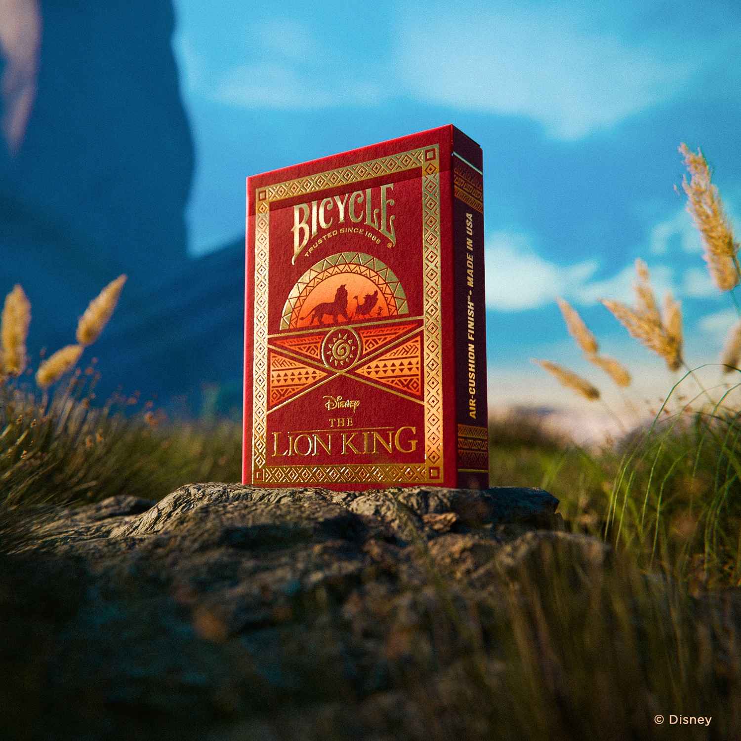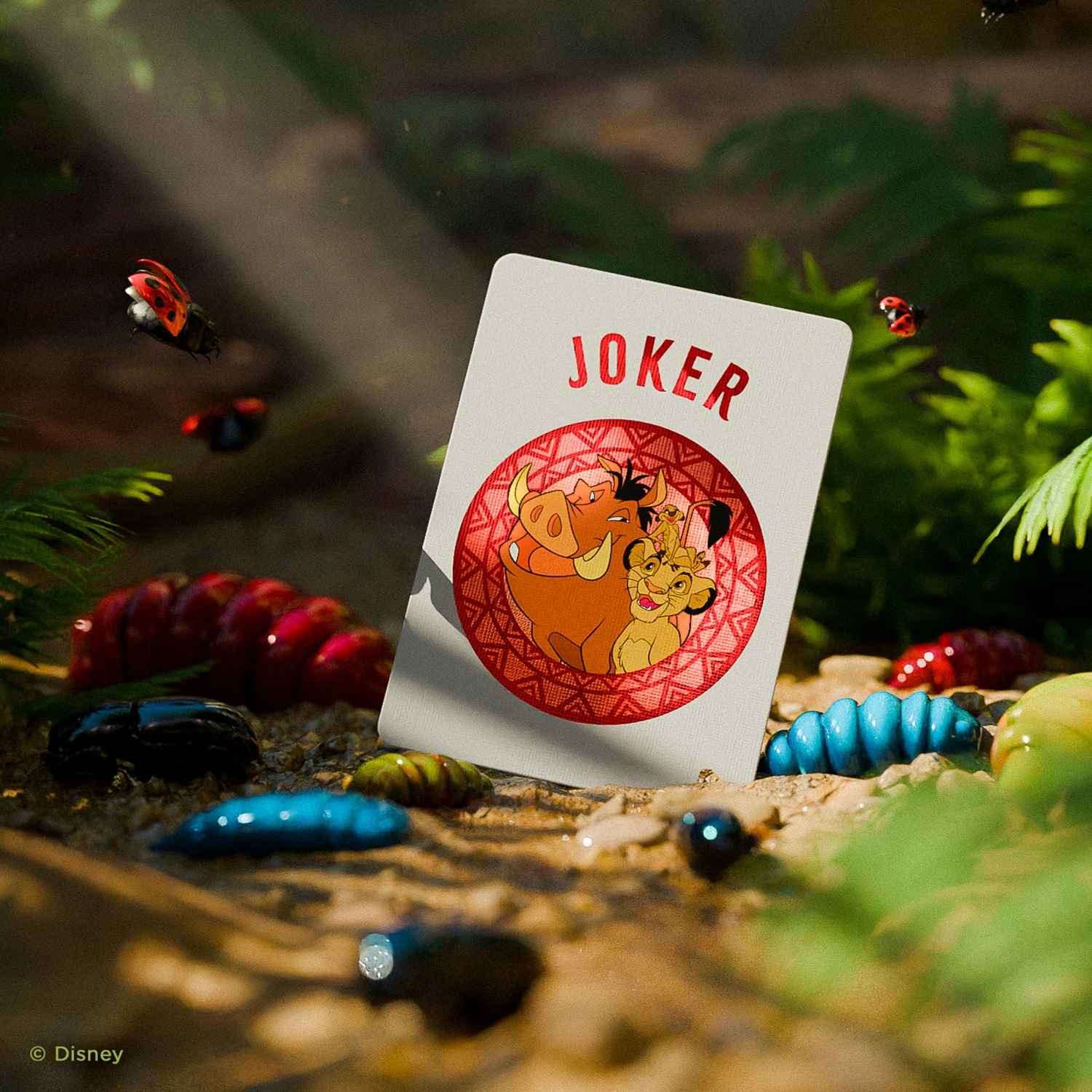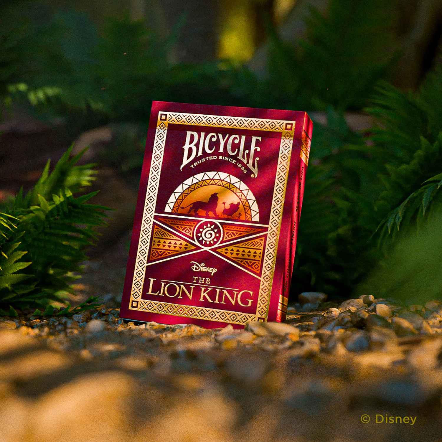 Werden Sie zum König des Spieleabends mit den von Bicycle Disney-Spielkarten rund um Timon, Pumbaa und Simba aus dem König der Löwen!