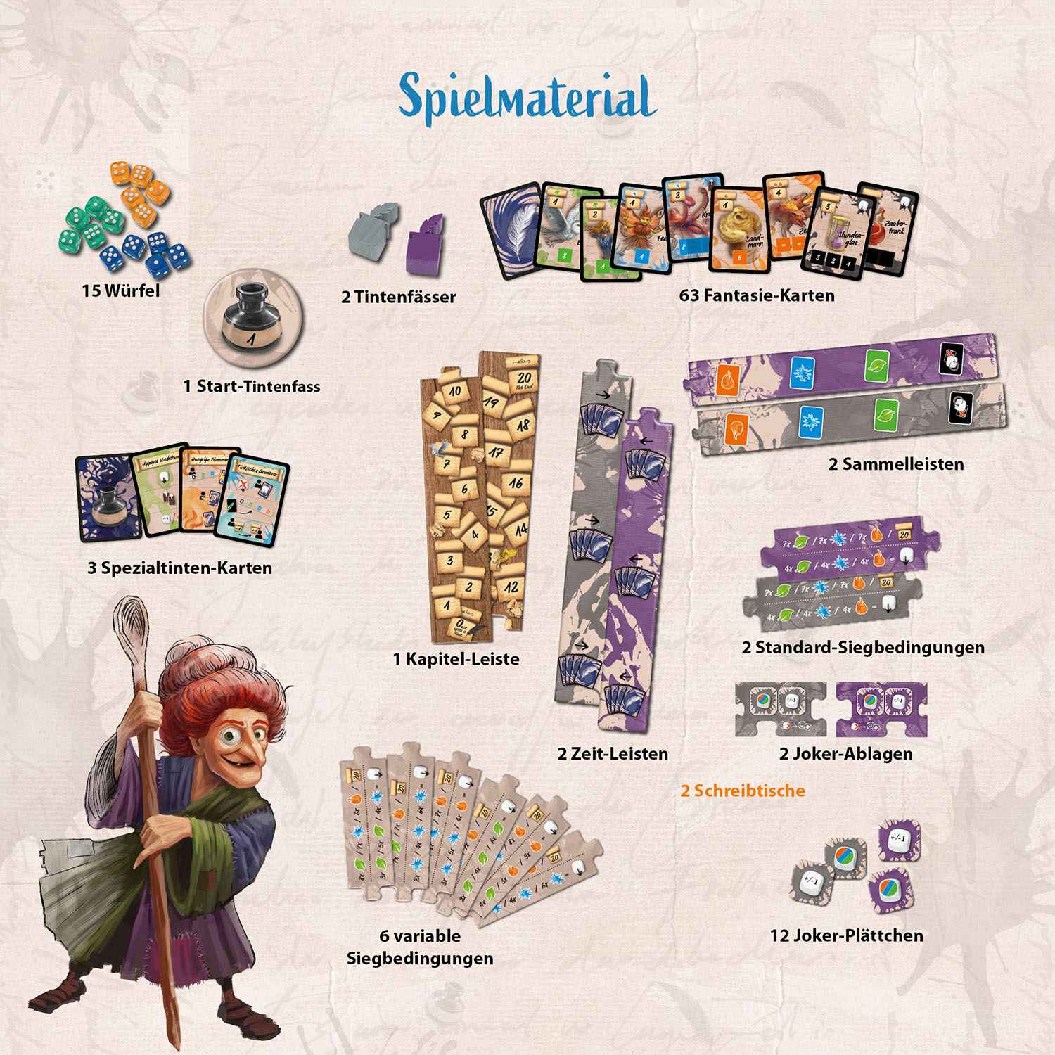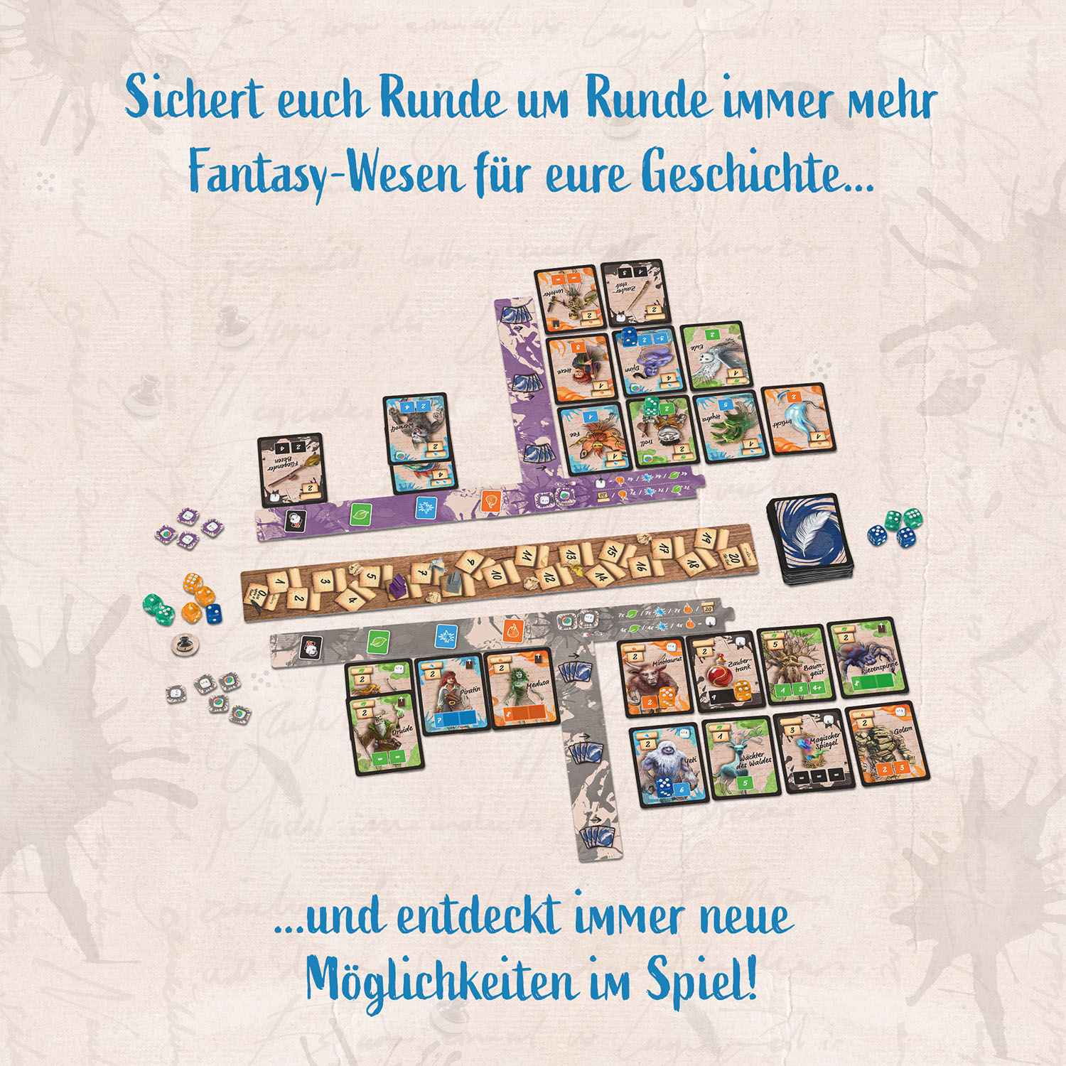 Ein Einhorn oder Pirat? Wer schafft es, die coolste Fantasy-Geschichte zusammenzustellen? In diesem fantasievollen Spiel vom Autor des Spiels "Sky Team" wetteifern zwei Spielerinnen und Spieler darum, die besten Fantasy-Charaktere für ihr Buch zu gewinnen. Runde für Runde wird ein Würfel aus dem Vorrat gewählt und auf eine Karte gelegt, um Heldinnen und Helden mit Geschenken zu locken. Verschiedene Wege führen zum Sieg: entweder das Buch zuerst vollenden oder besondere Heldengruppen sammeln. Die liebevoll illustrierten Karten und viel Interaktion sorgen für Spannung bis zum letzten Würfel. Für zwei Personen ab zehn Jahren.