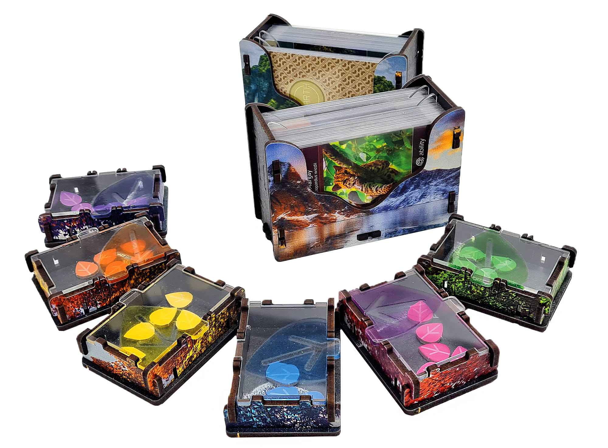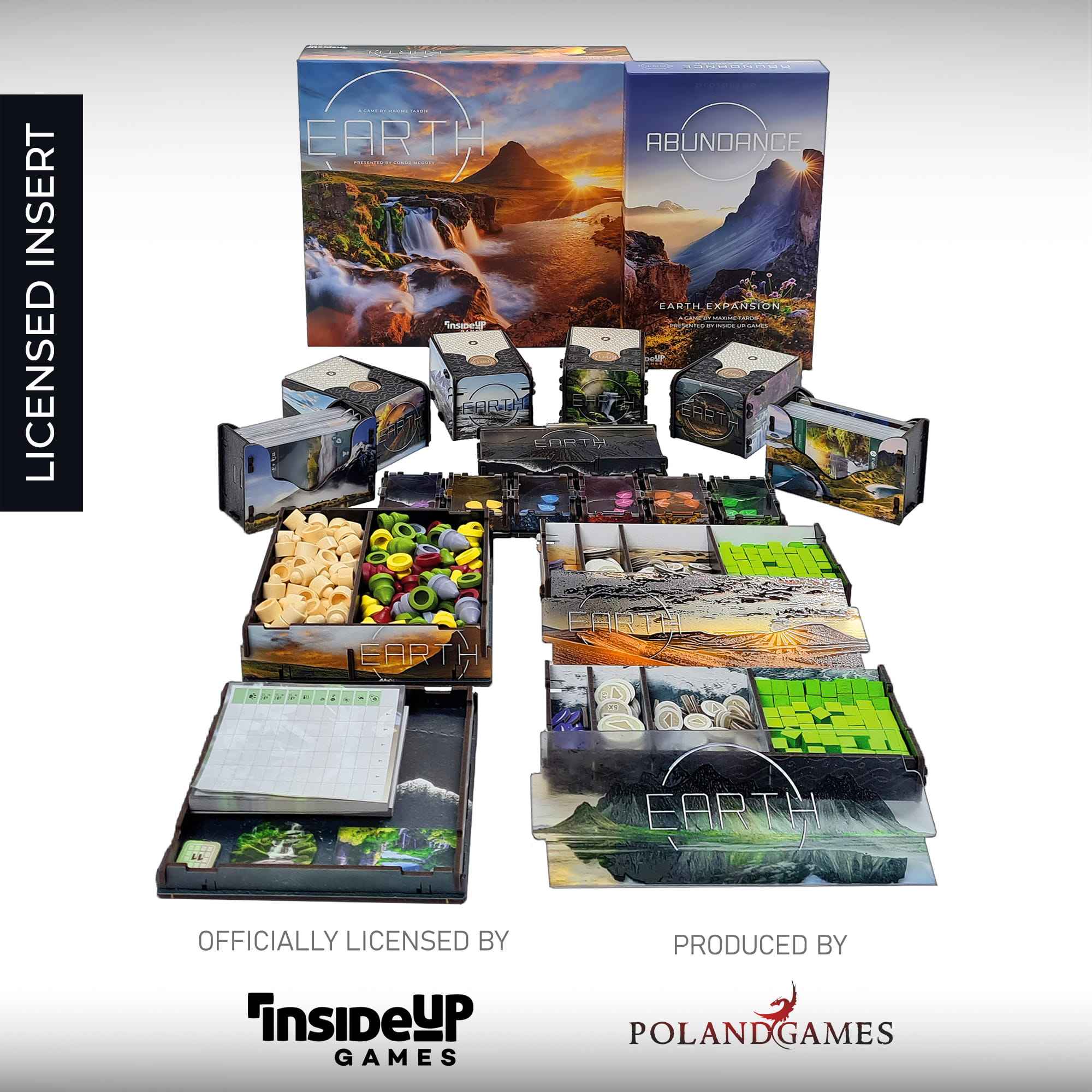 Our custom insert for Earth + Abundance expansion is designed to help you neatly organize all components and sleeved* cards, so everything stays in its place – no more clutter on the table or wasted time searching for pieces mid-game.