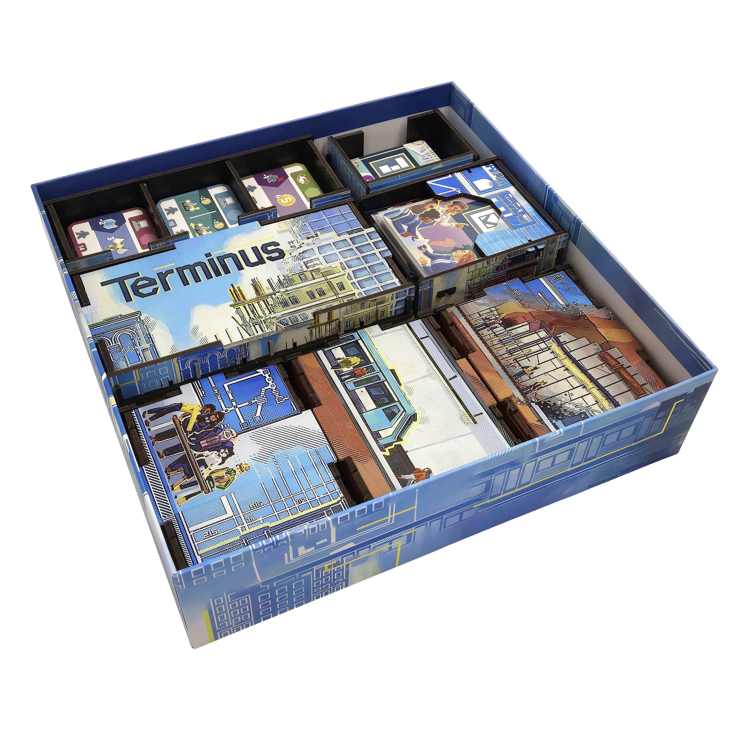 Our custom insert for Terminus is designed to help you neatly organize all components and sleeved* cards, so everything stays in its place – no more clutter on the table or wasted time searching for pieces mid-game.