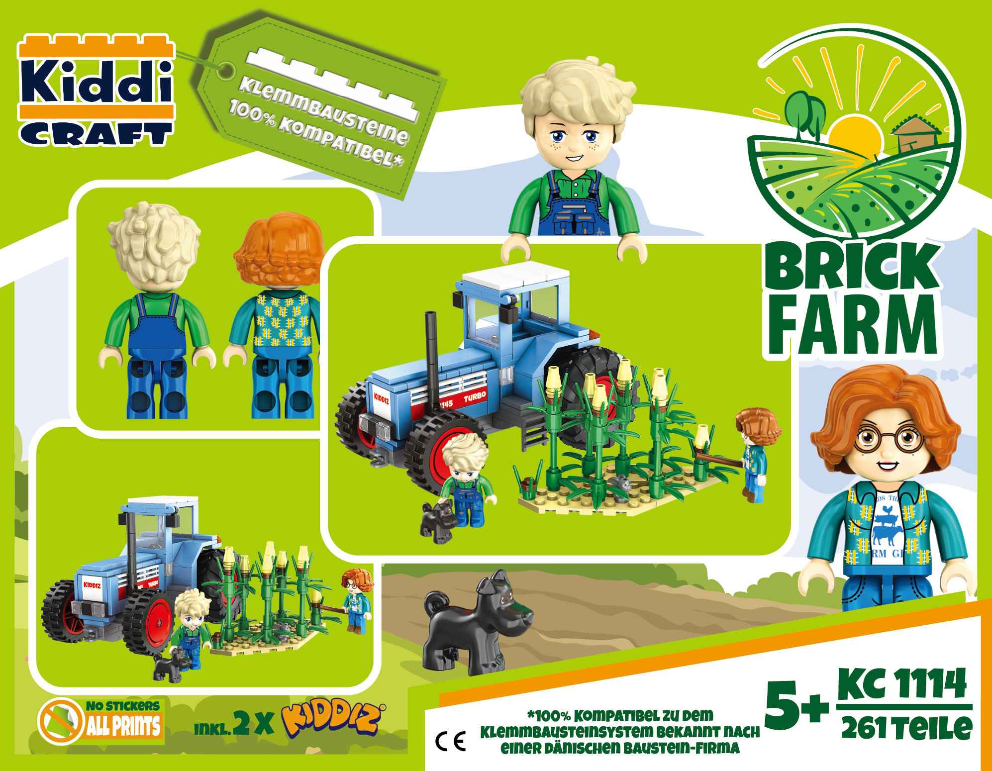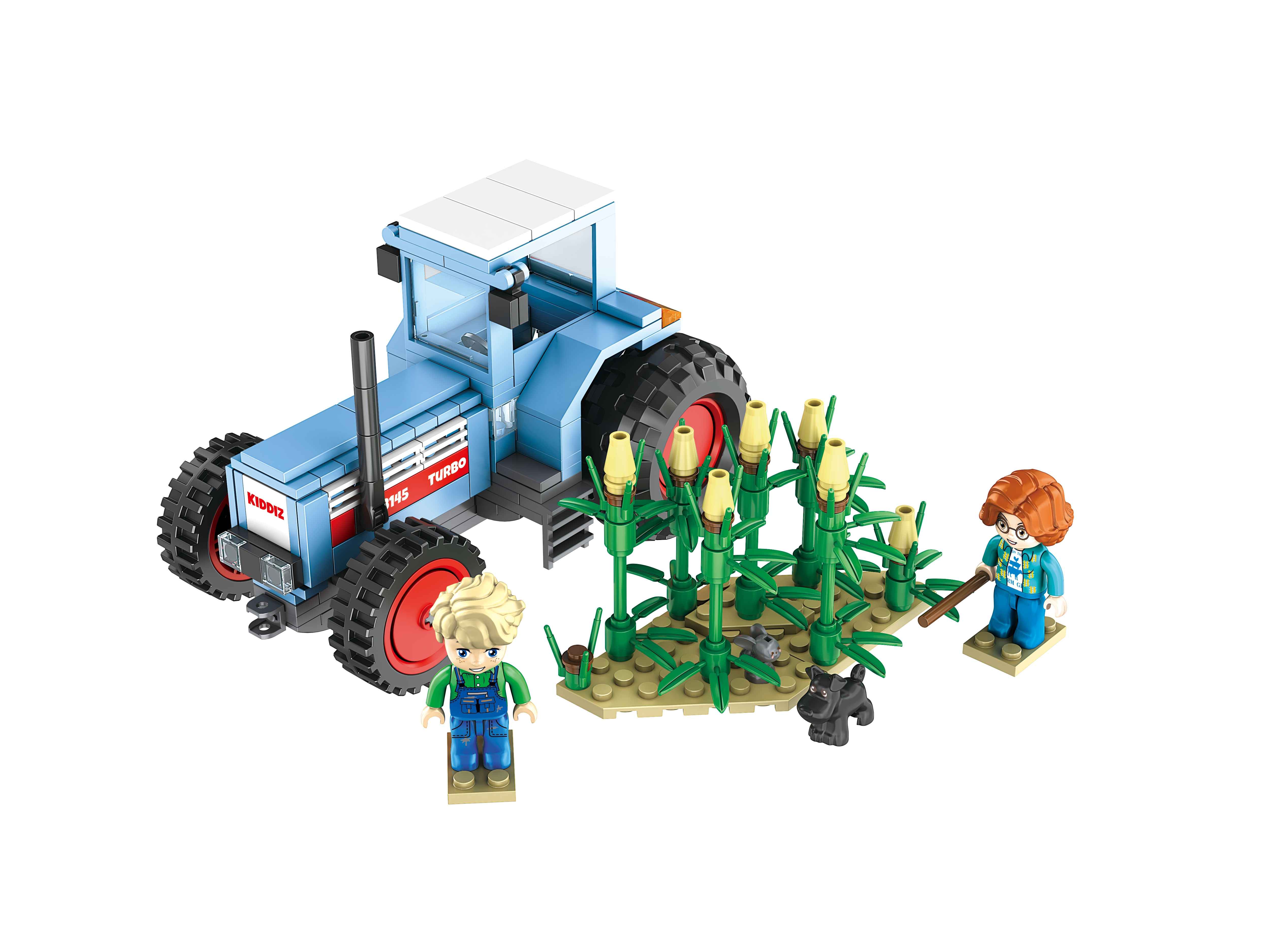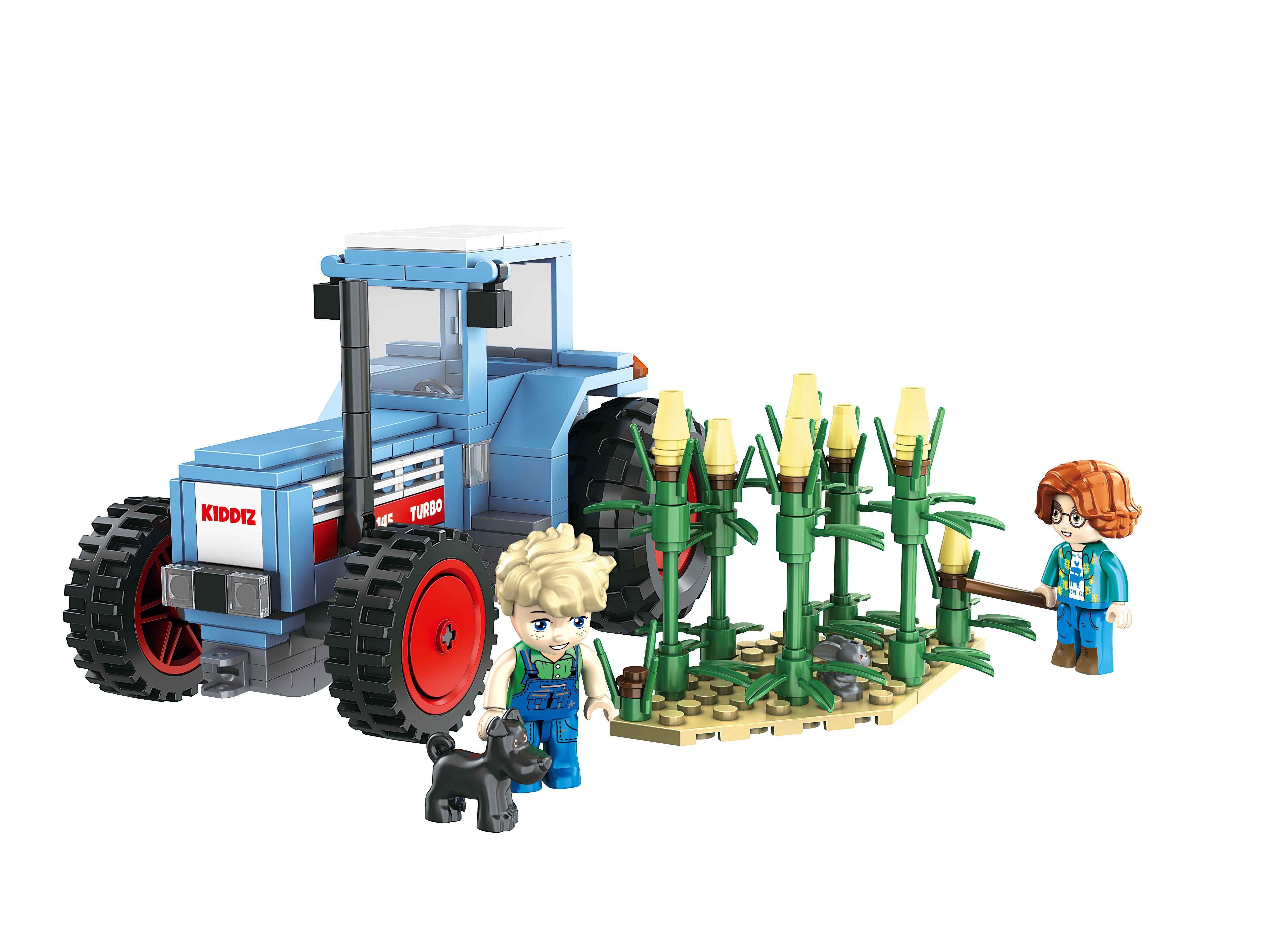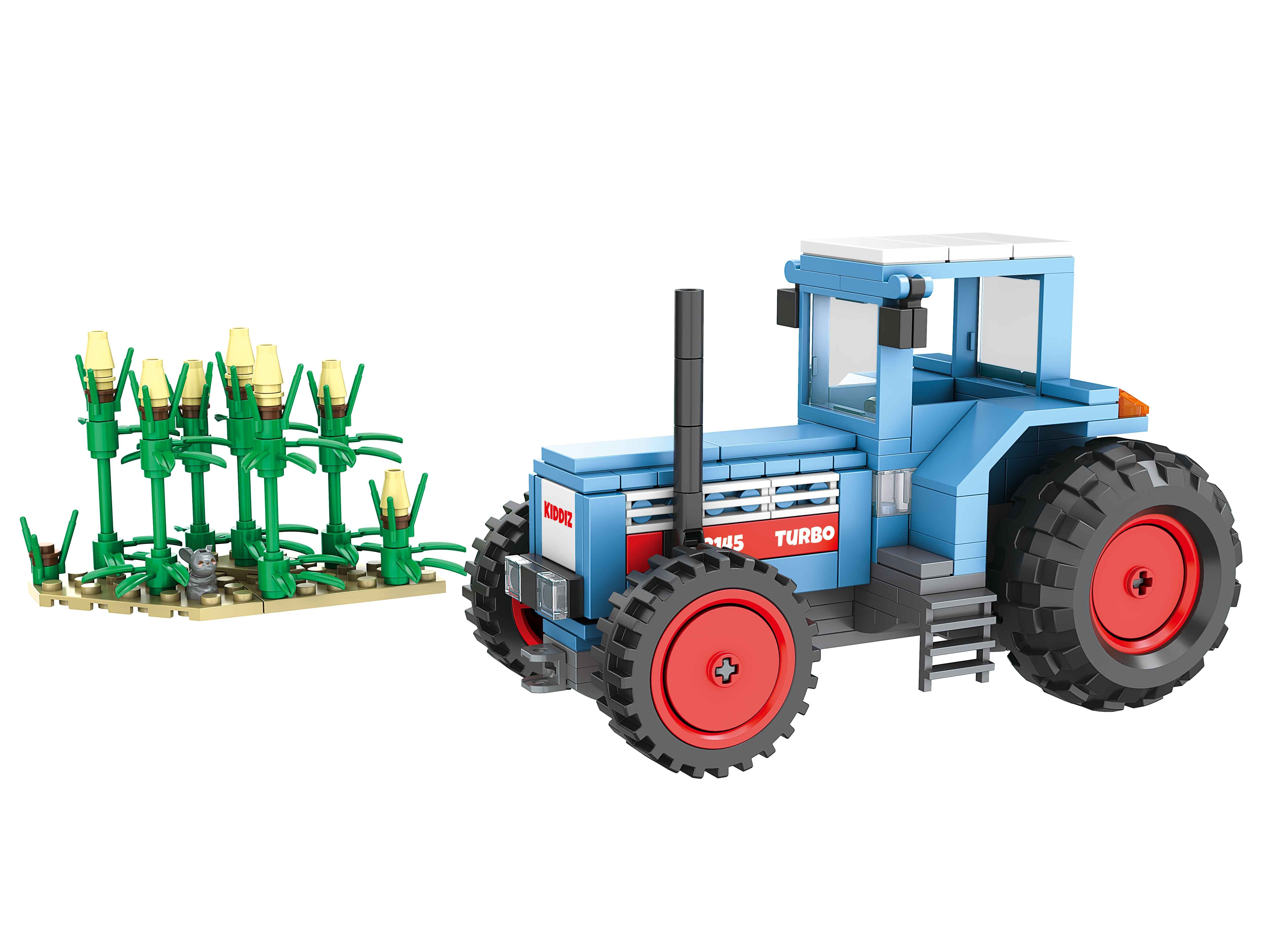 Kiddicraft KC1114 KIDDIZ Turbo 3145 Trecker Der bisher größte Schlepper aus dem Hause Kiddicraft: groß, blau, stark! Das Set enthält: - insgesamt 261 Teile - 1 Hase - 1 Hund - 2 Kiddiz - 1 kleines Stück Maisfeld Sehr gute Qualität der Bausteine 100% kompatibel mit den Klemmbausteinen des Marktführers Gut verständliche Bauanleitung beiliegend alles Drucke – keine Aufkleber Designed in Deutschland - Hergestellt in China Achtung! Nicht für Kinder unter 3 Jahren geeignet, da Kleinteile verschluckt werden können. Erstickungsgefahr!