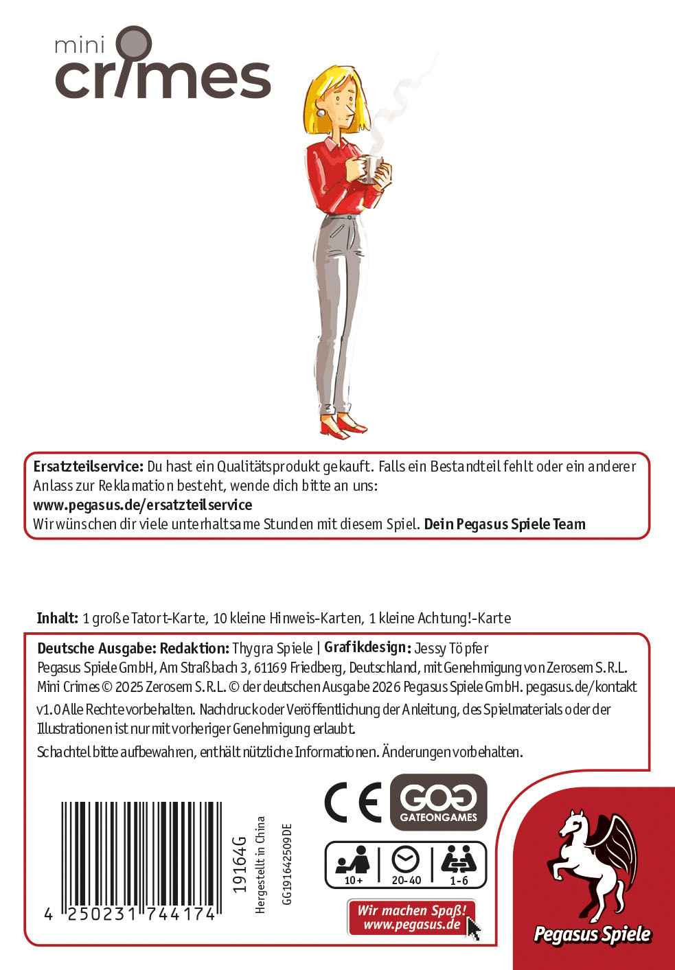 Die MiniCrimes Fälle sind kooperative Krimispiele, in denen die Spielenden ihre Beobachtungsgabe und ihre detektivischen Fähigkeiten unter Beweis stellen müssen, um einen mysteriösen Fall zu lösen. Sie untersuchen dabei den Tatort und bis zu 10 Hinweise, die sie mit Bedacht auswählen müssen, um das Geheimnis zu lüften!