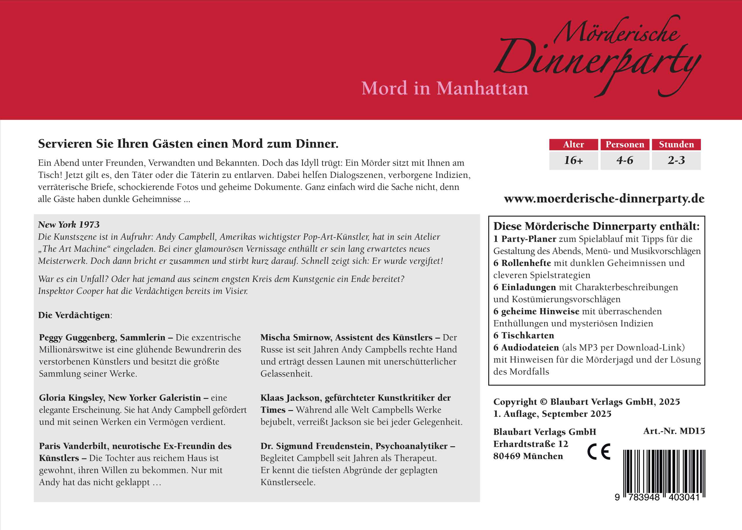 "New York 1973. Auf einer glamourösen Vernissage bricht Pop-Art-Star Andy Campbell plötzlich zusammen und stirbt kurz darauf. Bald steht fest: Es war Gift!
