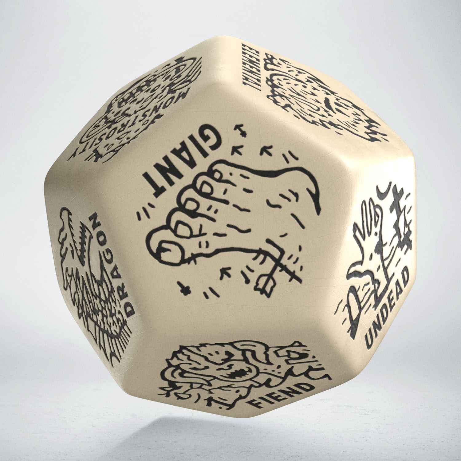 "No encounter prepared? We’ve got you! The Monster Generator Die is a jumbo D12 designed by Viridian Dice,used to conjure a monster on your players’ path. Randomization speaks volumes! Each use summonspossibility - from Dragons and Fiends to Oozes and Undead - twelve chances to decide what will stalk the party next. Choose from 3 color variants and give them some unexpected fun!"