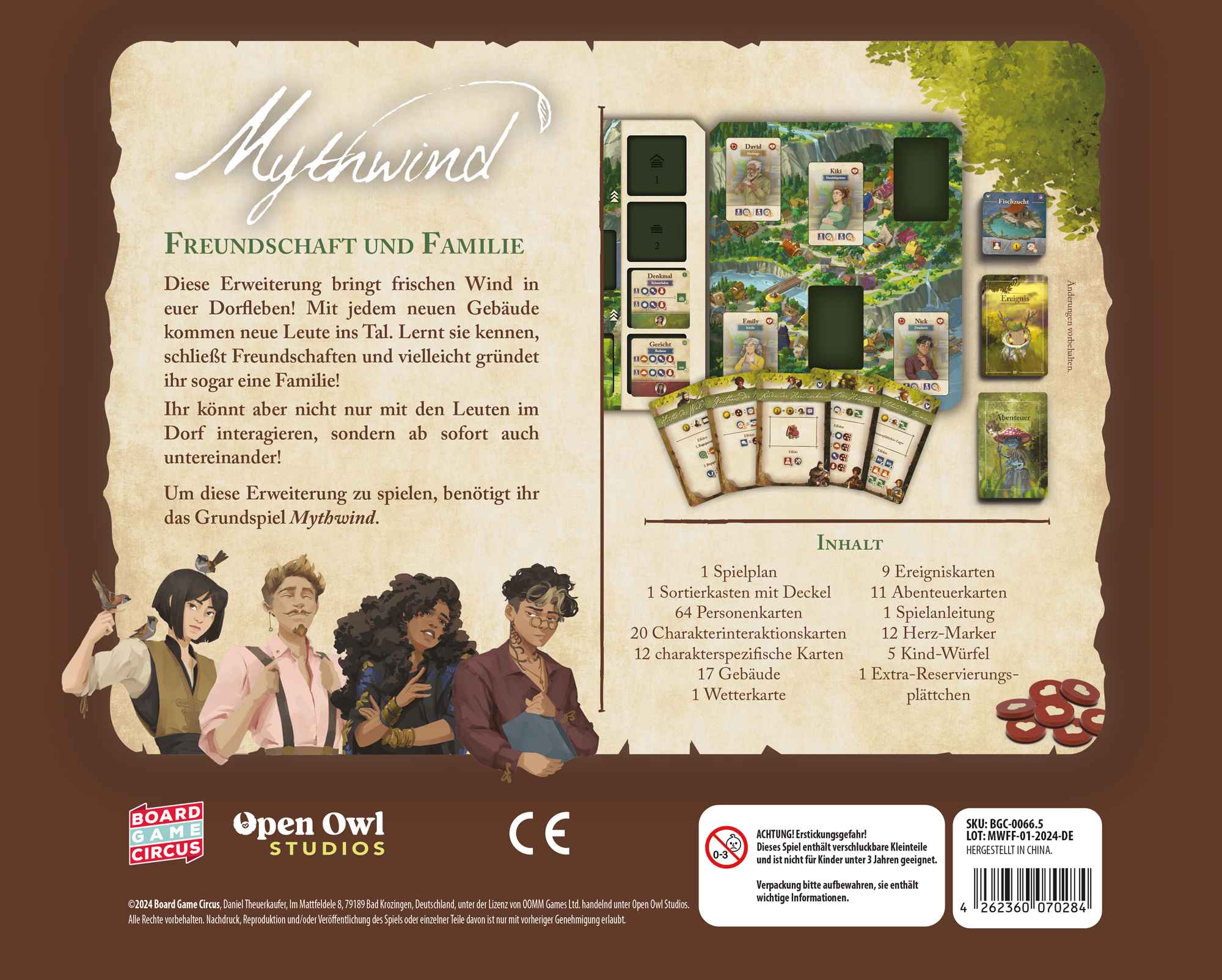 Mit Mythwind: Freundschaft & Familie taucht ihr noch tiefer in das Leben des Tals ein und erlebt, wie Beziehungen, Nähe und gemeinsamer Alltag eure Welt bereichern.Diese Erweiterung stellt euch interaktive Dorfbewohner vor, die als neue Freunde in euer Leben treten können, und eröffnet euch gleichzeitig die Möglichkeit, eine eigene Familie zu gründen.Im Laufe eurer Tage im Tal errichtet ihr besondere Gebäude, die neue Bewohner anziehen. Jeder von ihnen mit einer eigenen Persönlichkeit, Geschichte und nützlichen Vorteilen. Wenn ihr ihnen begegnet und mit ihnen Zeit verbringt, entwickelt ihr eure Freundschaft Schritt für Schritt weiter.Aber auch das Familienleben hält Einzug in Mythwind. Wenn ihr einen Dorfbewohner heiratet, erhaltet ihr nicht nur besondere Vorteile, sondern könnt sogar eine eigene Familie gründen. Kinder bringen durch ihre speziellen Würfel neue strategische Momente und kleine Überraschungen in den Alltag, die jede Partie lebendiger machen.Schafft Bindungen, erlebt den Zauber des Familienlebens und gestaltet euer Leben im Tal von Mythwind so persönlich wie nie zuvor.