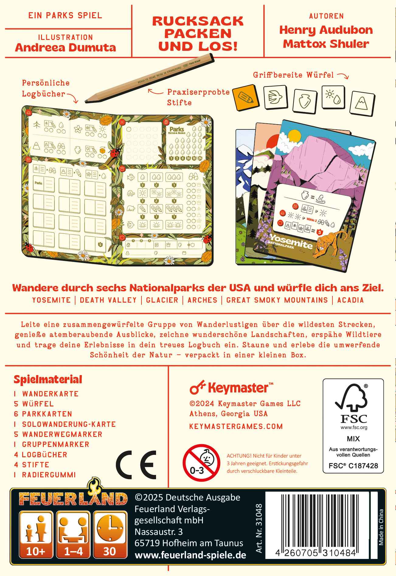 "Wandere durch sechs Nationalparks der USA und würfle dich ins Ziel.Leite eine zusammengewürfelte Gruppe von Wanderlustigen über die wildesten Strecken, genieße atemberaubende Ausblicke, zahlreiche wunderschöne Landschaften, erspähe Wildtiere und trage deine Erlebnisse in dein treues Logbuch ein. Staune und erlebe die umwerfende Schönheit der Natur - verpackt in einer kleinen Box."