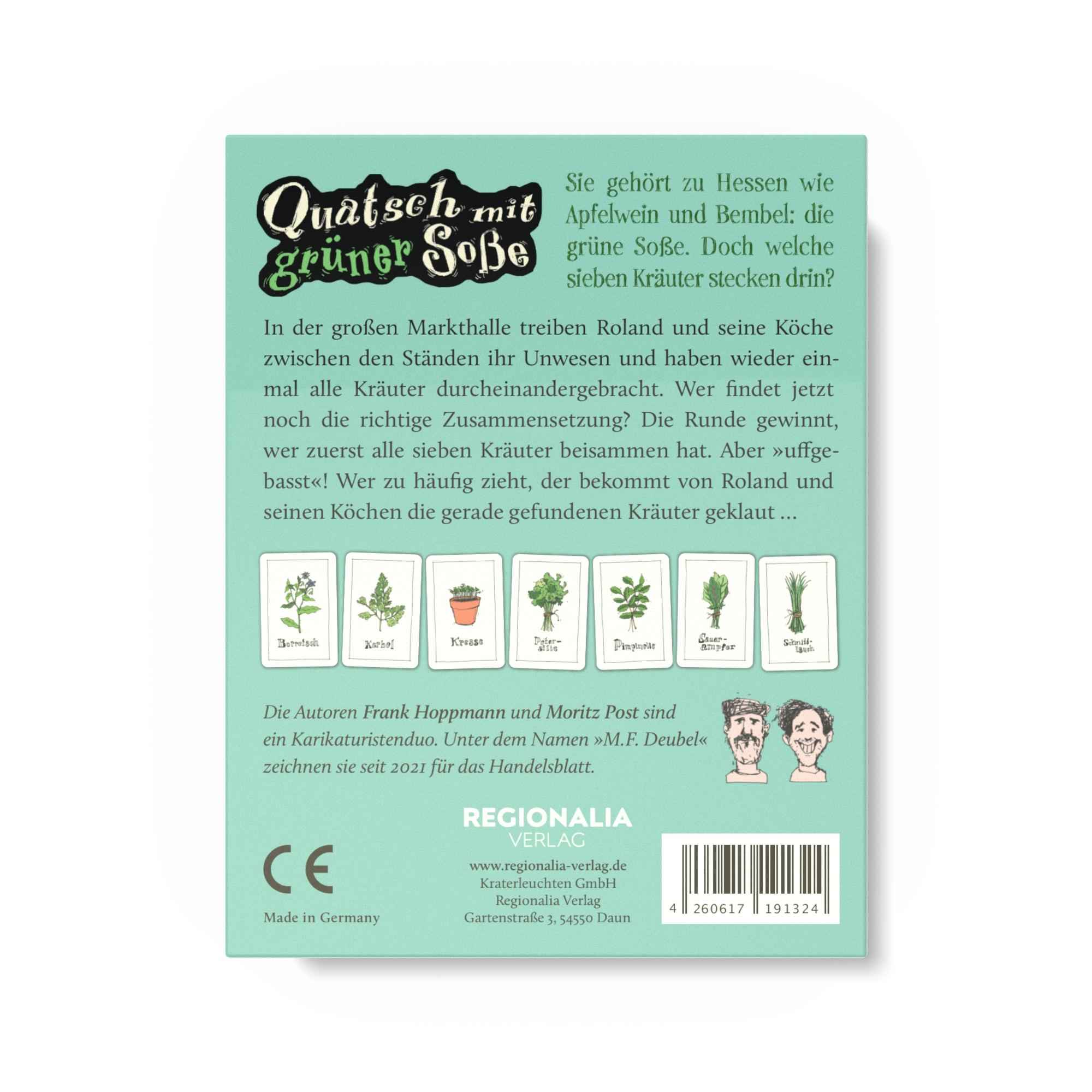 In diesem lustigen Kartenspiel für die ganze Familie heißt es: Sammeln, merken und das Risiko clever einschätzen! Wer schafft es als Erster, alle sieben Kräuter zu ergattern und die perfekte Grüne Soße zu mischen? Aber Vorsicht! Wer zu oft zieht, riskiert, dass Roland und seine Köche die hart erkämpften Kräuter wieder klauen. Zum Glück gibt es noch eine echte hessische Legende: Heinz Schenk persönlich hilft mit einer Joker-Karte aus der Patsche.