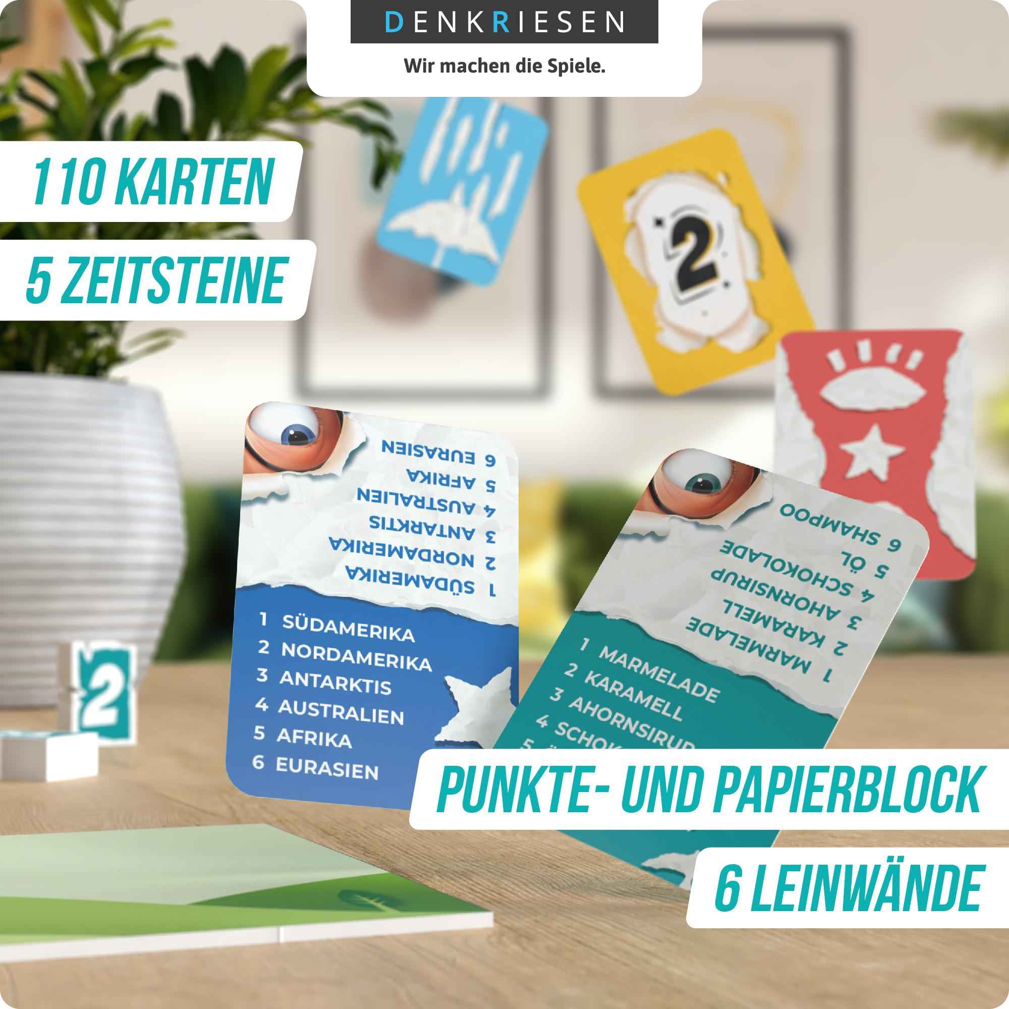 Das mitreißende Partyspiel! Bei REISS AUS wird das Papier zum Star: Reißen, knüllen, falten, verdrehen – alles ist erlaubt, damit die anderen Spieler deinen geheimen Begriff erraten können. Vielleicht würde euer Meisterwerk von der Kritik verrissen werden, aber hier geht es ja zum Glück um Punkte. Auf geht’s zu eurer ABRISSPARTY!
