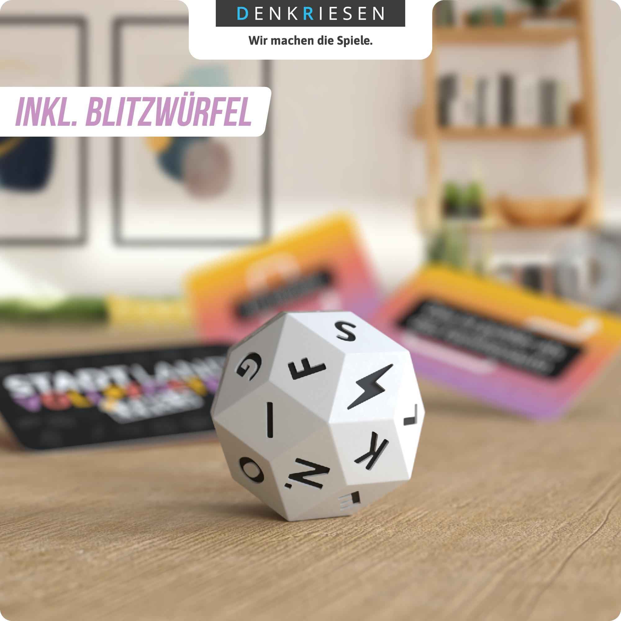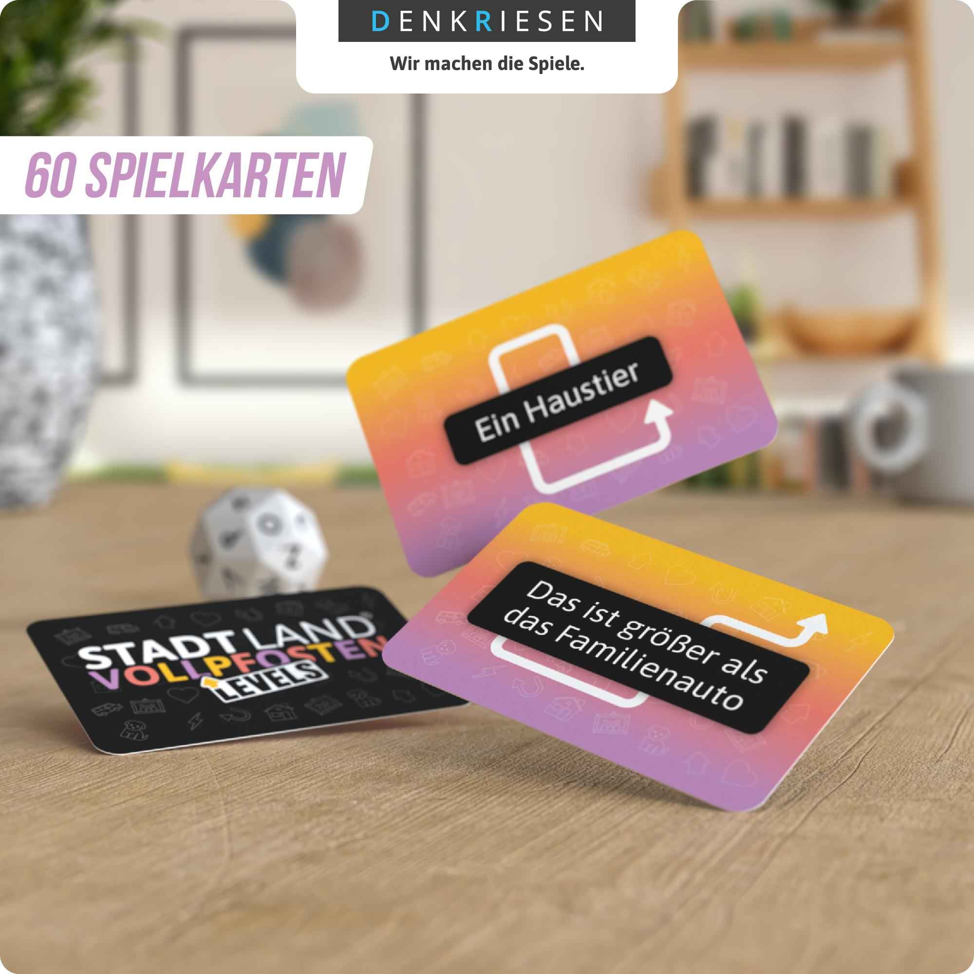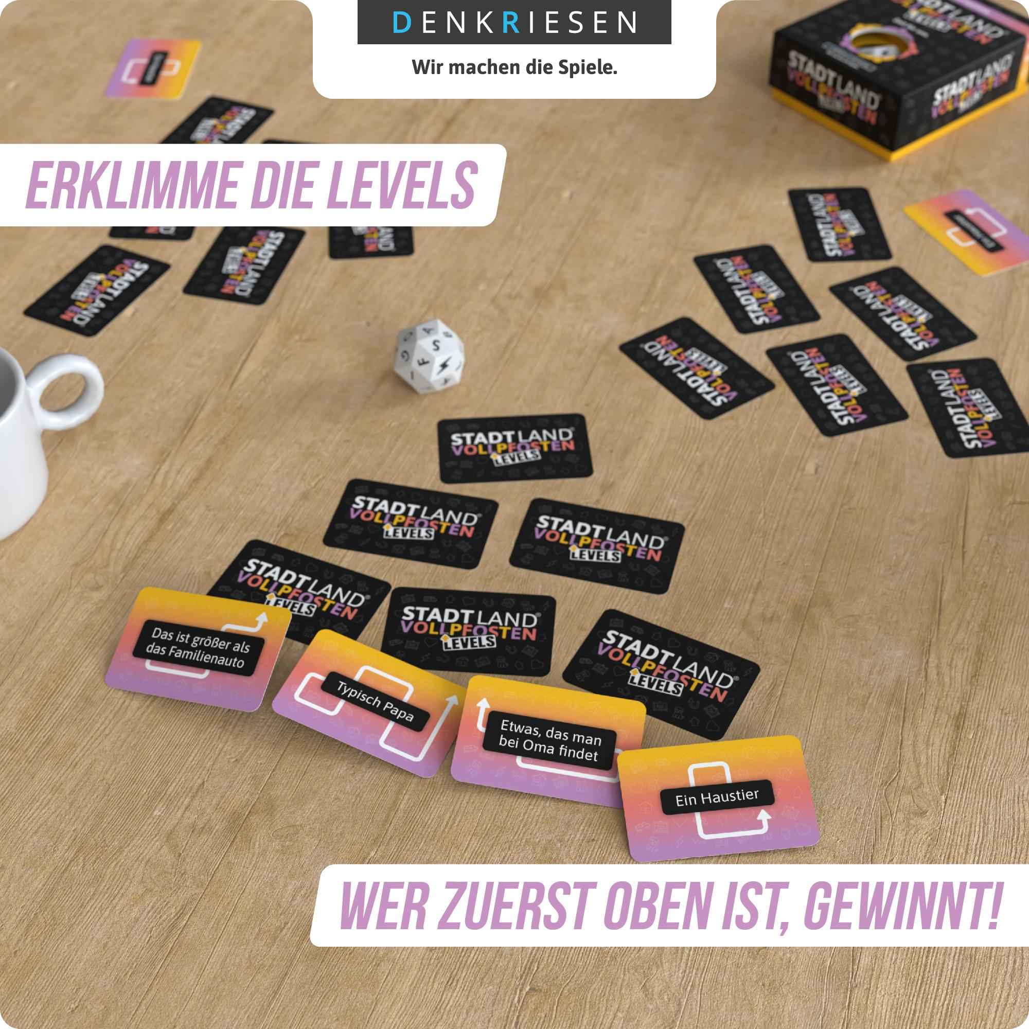 Bei dieser warmherzigen Variante von STADT LAND VOLLPFOSTEN geht’s hoch hinaus! Findet passende Begriffe zum gewürfelten Buchstaben und erklimmt so die Levels. Wer zuerst oben ist, gewinnt!