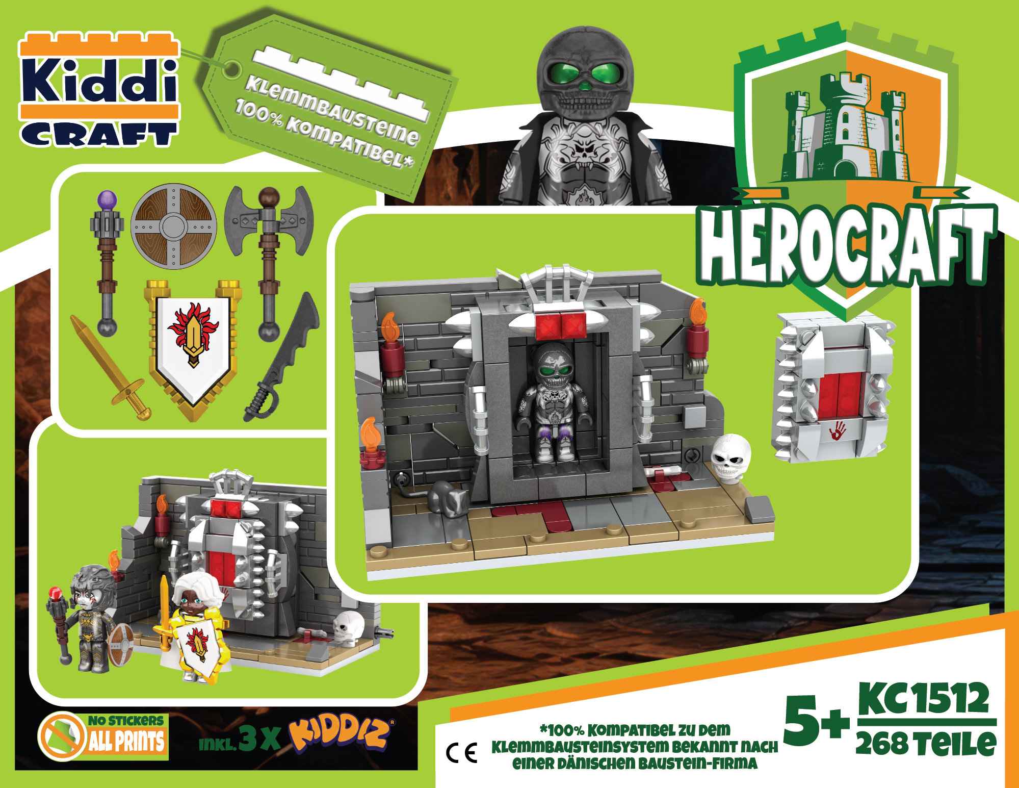 -268 Teile- einen öffenbaren Sarkophag-3 KIDDIZ Figuren: 1 Skelett-Hexer, 1 Gefallenen, 1 Paladinin- das nötige Zubehör um die Paladinin oder den Gefallenen in einen Skelttkrieger zu verwandeln- 2 Textil-Umhänge