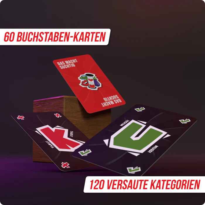 Jetzt wird‘s EXTREM dreckig! Wir haben STADT LAND VOLLPFOSTEN noch einen fiesen Dreh verpasst. Ihr sucht ein passendes Wort zu einer Kategorie. Kennt man ... Aber! Bestimmte Buchstaben müssen im Wort stecken ... und andere sind streng verboten. Und manchmal ist alles umgekehrt. Wer findet die richtigen Worte?