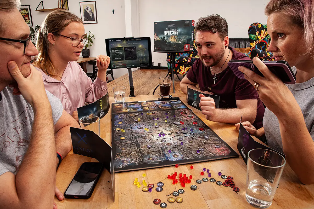 | Content: | 7 Main Character Smart Miniatures 2 Ally Smart Miniatures 2 Ghoul Smart Miniatures 29 Faction Control Tokens 18 Investigation Tokens 1 Masquerade Token 30 Anarch Influence Cubes 20 Camarille Influence Cubes 15 St. Ambrose Influence Cubes 1 Double Layered Game Board 1 Smart Die (D10) |