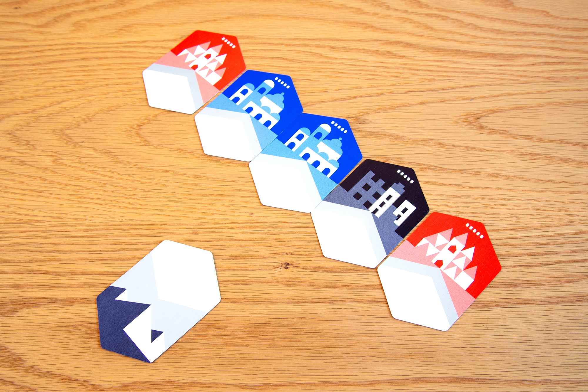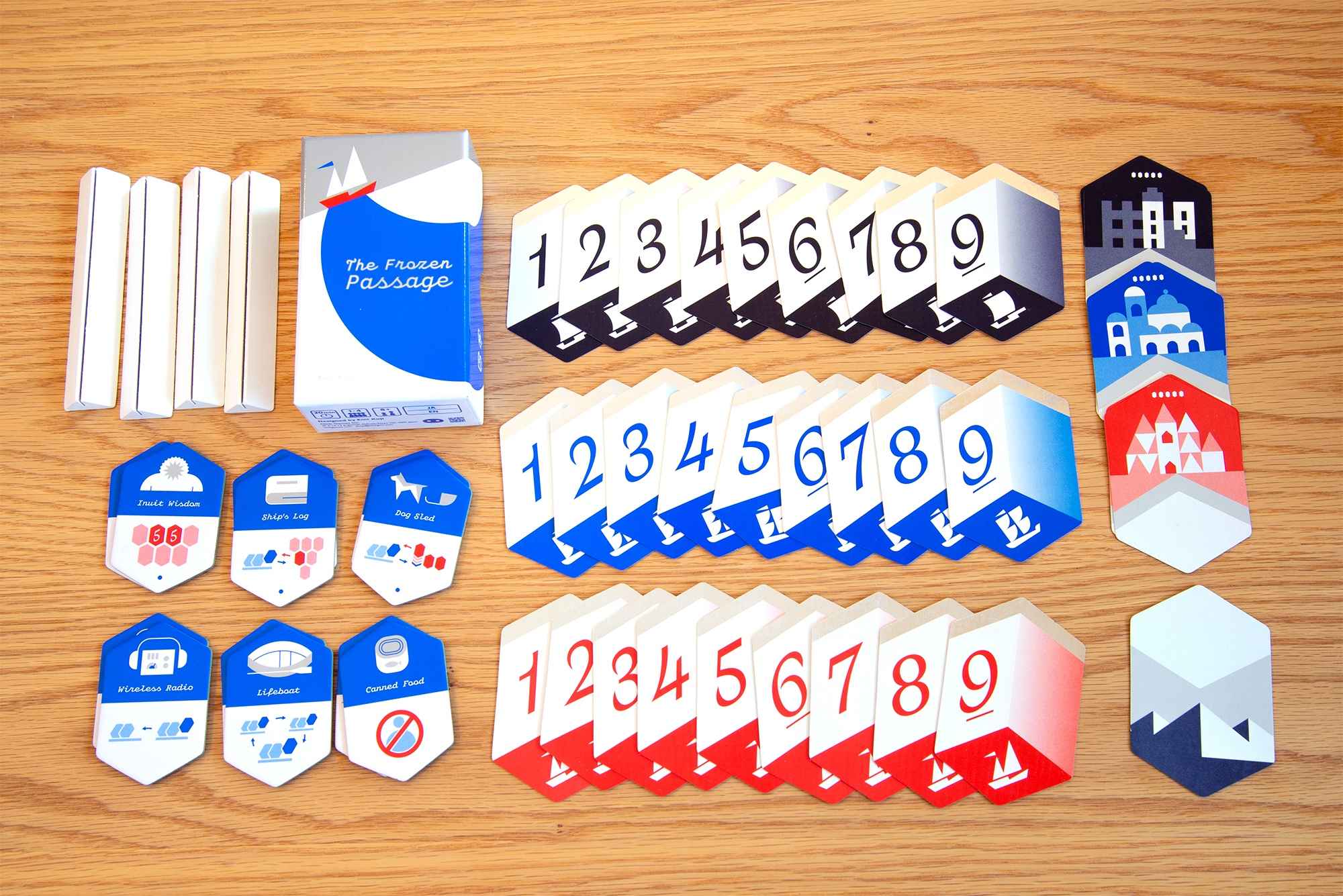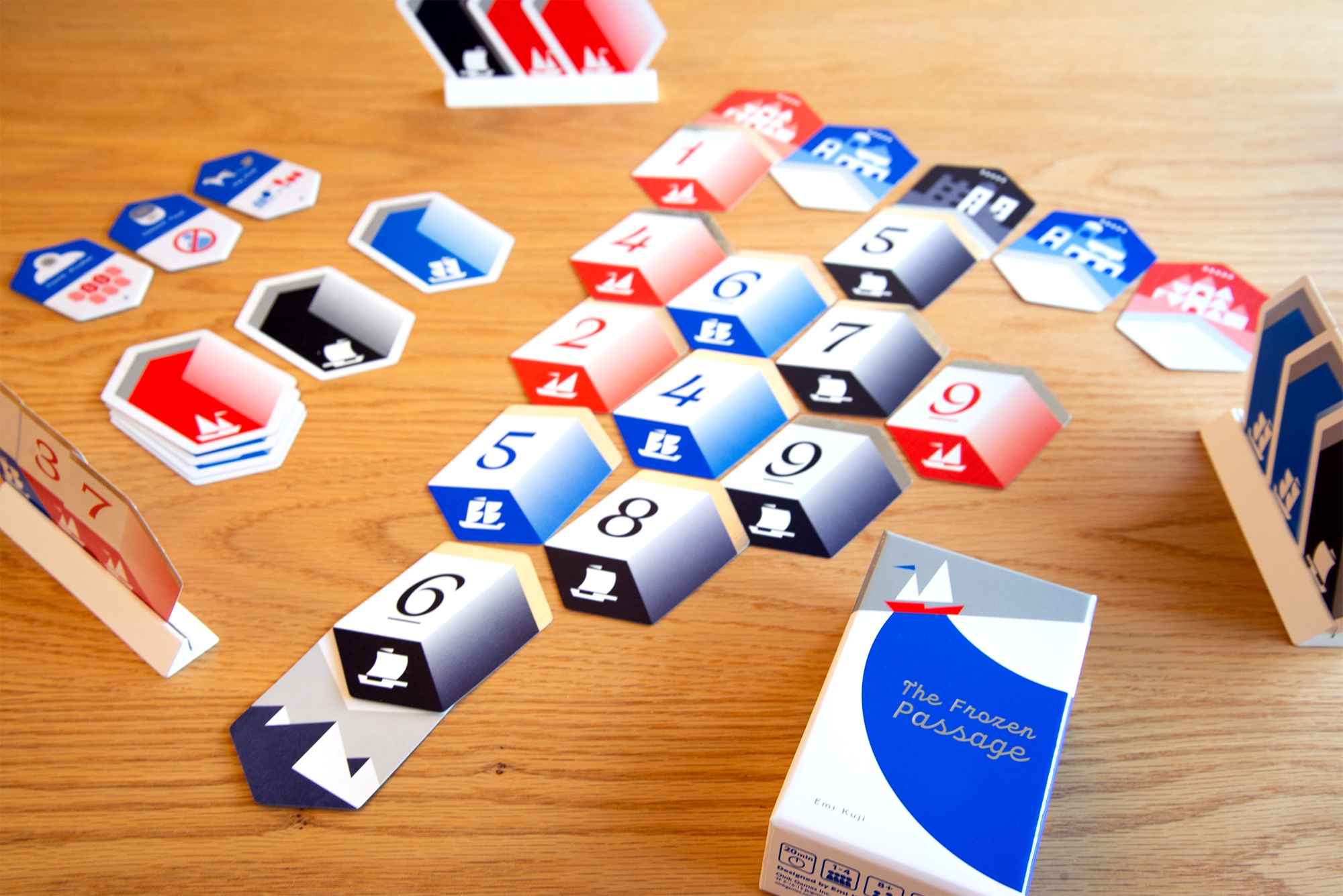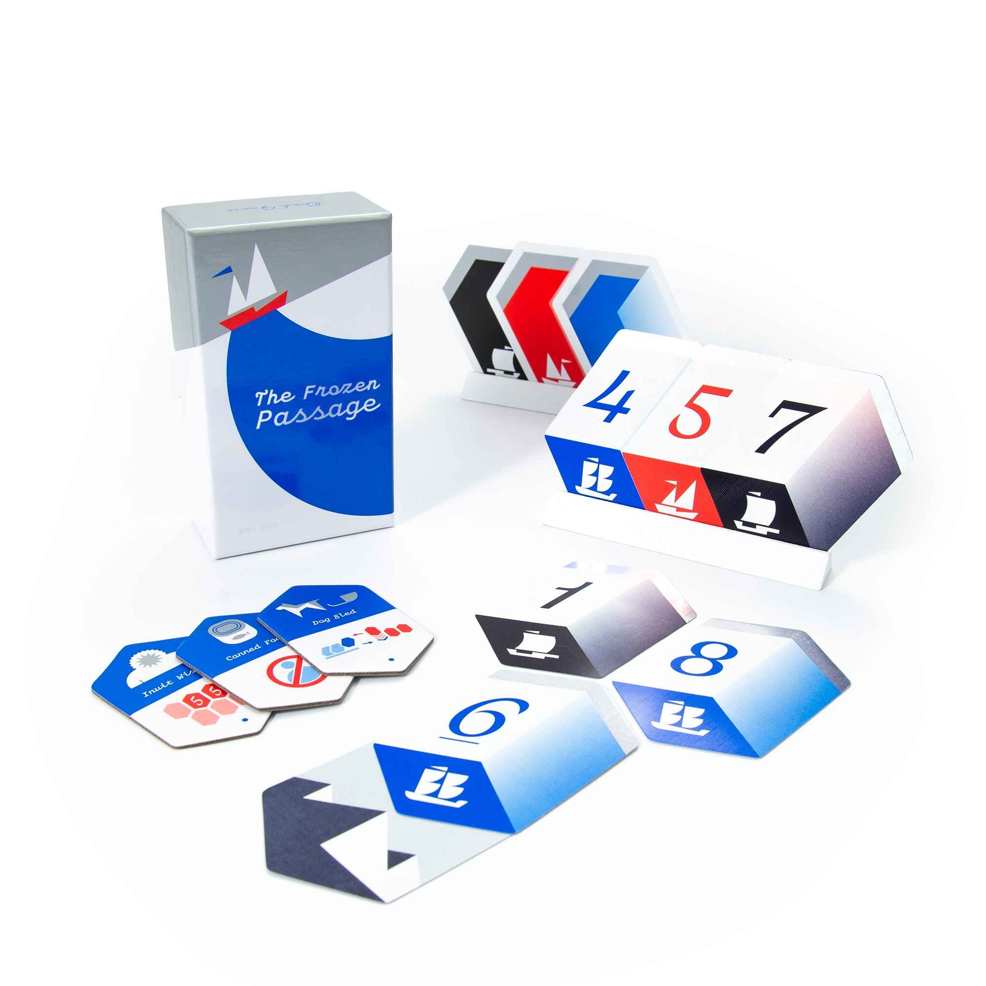 The Northwest Passage. An elusive sea route along the northern coast of America that's said to link the Pacific and Atlantic oceans. Since the 15th century, expeditions were launched with the dream of discovering it, only to then vanish in the icebergs. This is a cooperative game where you aim to connect 15 cards together while meeting the necessary conditions. But if you veer off course even slighty, your voyage will end in failure. Work together and predict which cards the other players hold, make use of items, and successfully traverse the route that humanity has dreamed of!