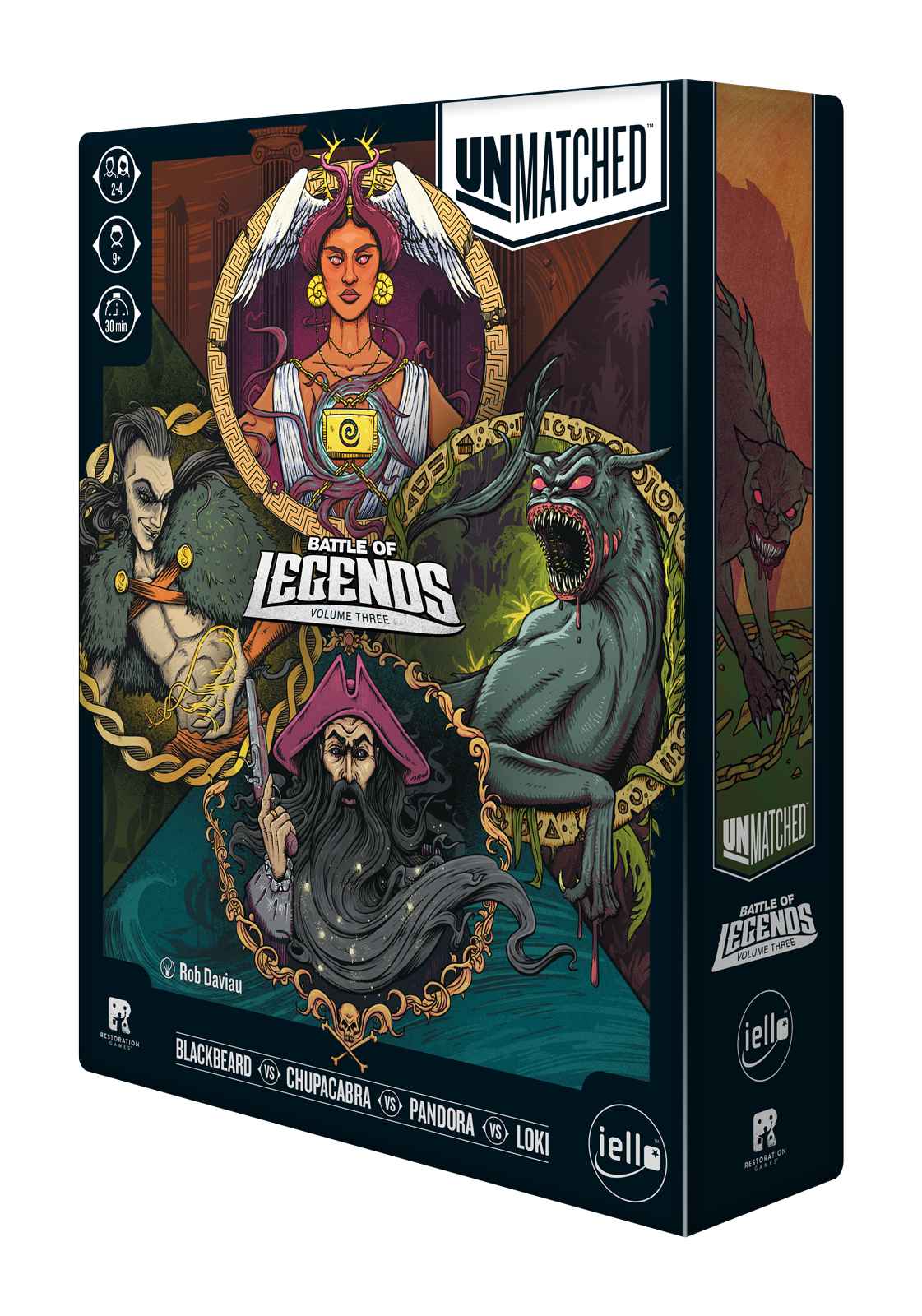 Good things come in threes. Unmatched is the critically acclaimed, best-selling game of tactical combat between unlikely opponents, and the Battle of Legends badge has always been the epitome of “unlikely”. In the final entry of the Battle of Legends set, four disparate heroes come together to see who reigns supreme: