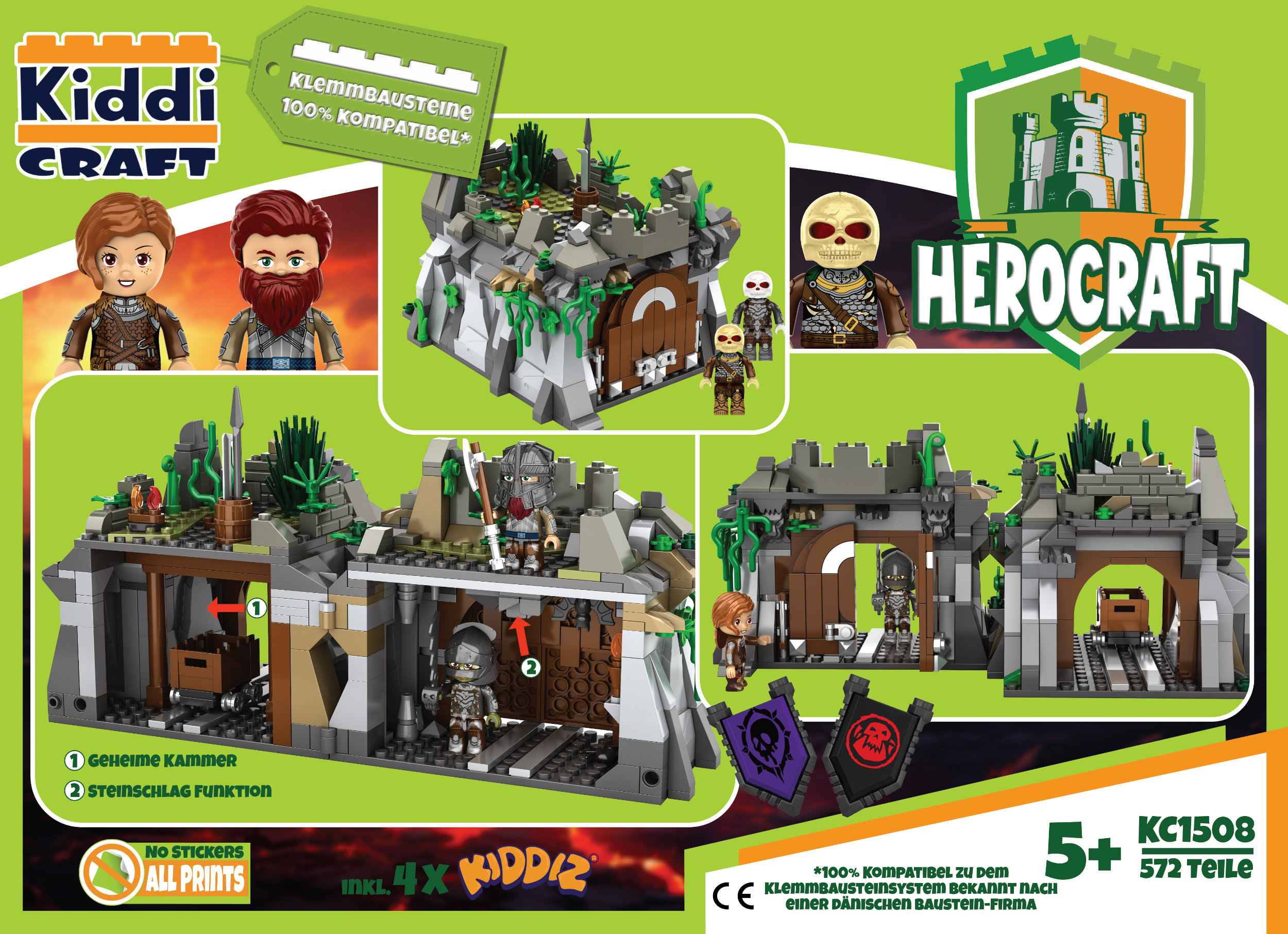 -572 Teile-4 KIDDIZ Figuren-viele Accessoires- Steinschlag Funktion- geheimer Hohlraum für Schätze oder den Skelettkrieger