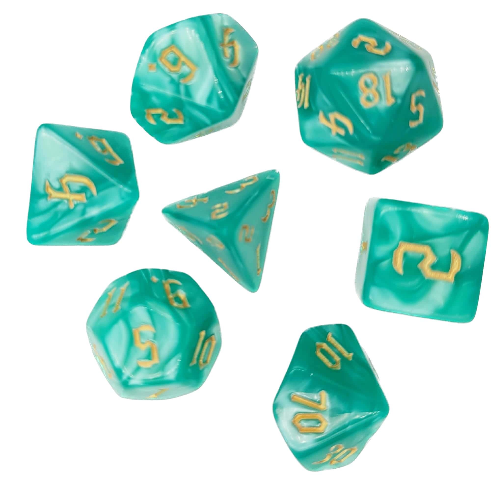 7-teiliges polyedrisches RPG-Würfelset bestehend aus den spieltypischen und relevanten RPG-Würfeln: D4, D6, D8, D10 (0-9), D10 (00-90), D12 und D20. Die Würfel können für Rollenspiele wie Dungeons & Dragons, Pathfinder, Shadowrun, Warhammer40k, Math Games und vielen anderen Pen & Paper/- bzw. Brettspielen verwendet werden Die Würfel werden in einer hochwertigen und robusten Qualität hergestellt und zeichnen sich durch klare Kanten, einer farblich abgestimmten Zifferndarstellung und einer langlebigen, hervorragenden Bespielbarkeit aus.